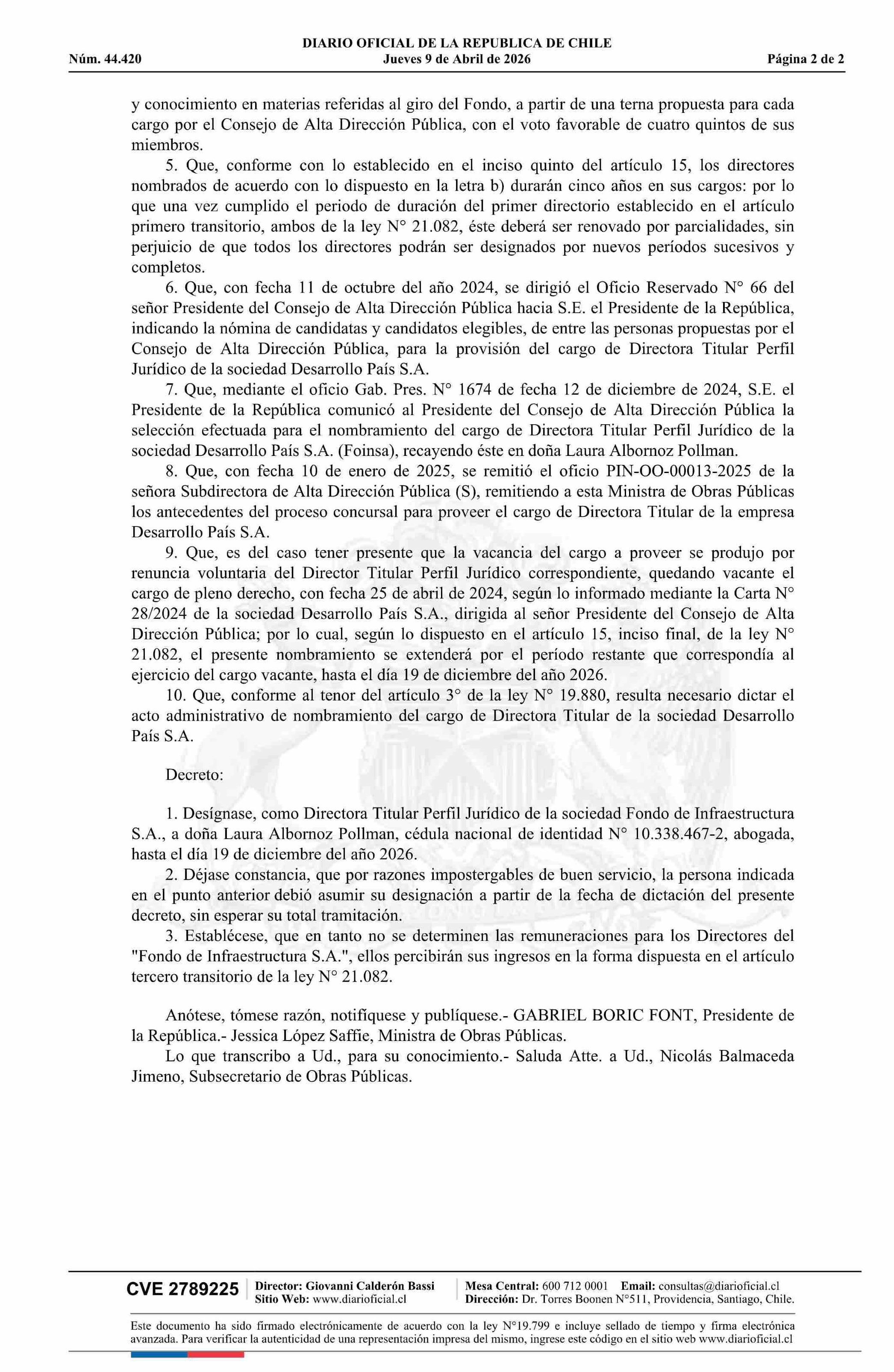 MINISTERIO DE OBRAS PÚBLICAS 09-04-2026 Diario Oficial Edición Electrónica |