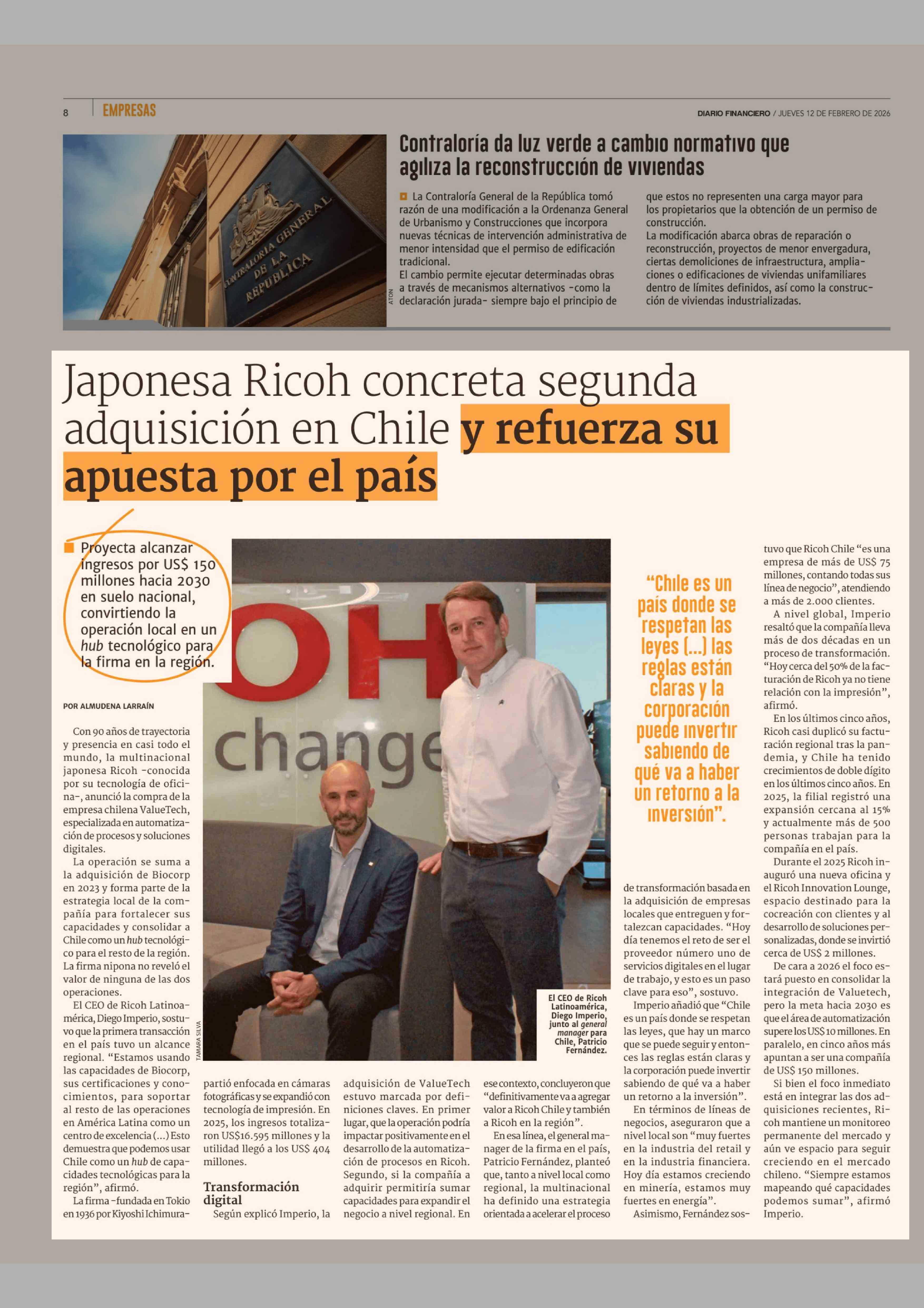 Título: Japonesa Ricoh concreta segunda adquisición en Chile y refuerza su apuesta por el país