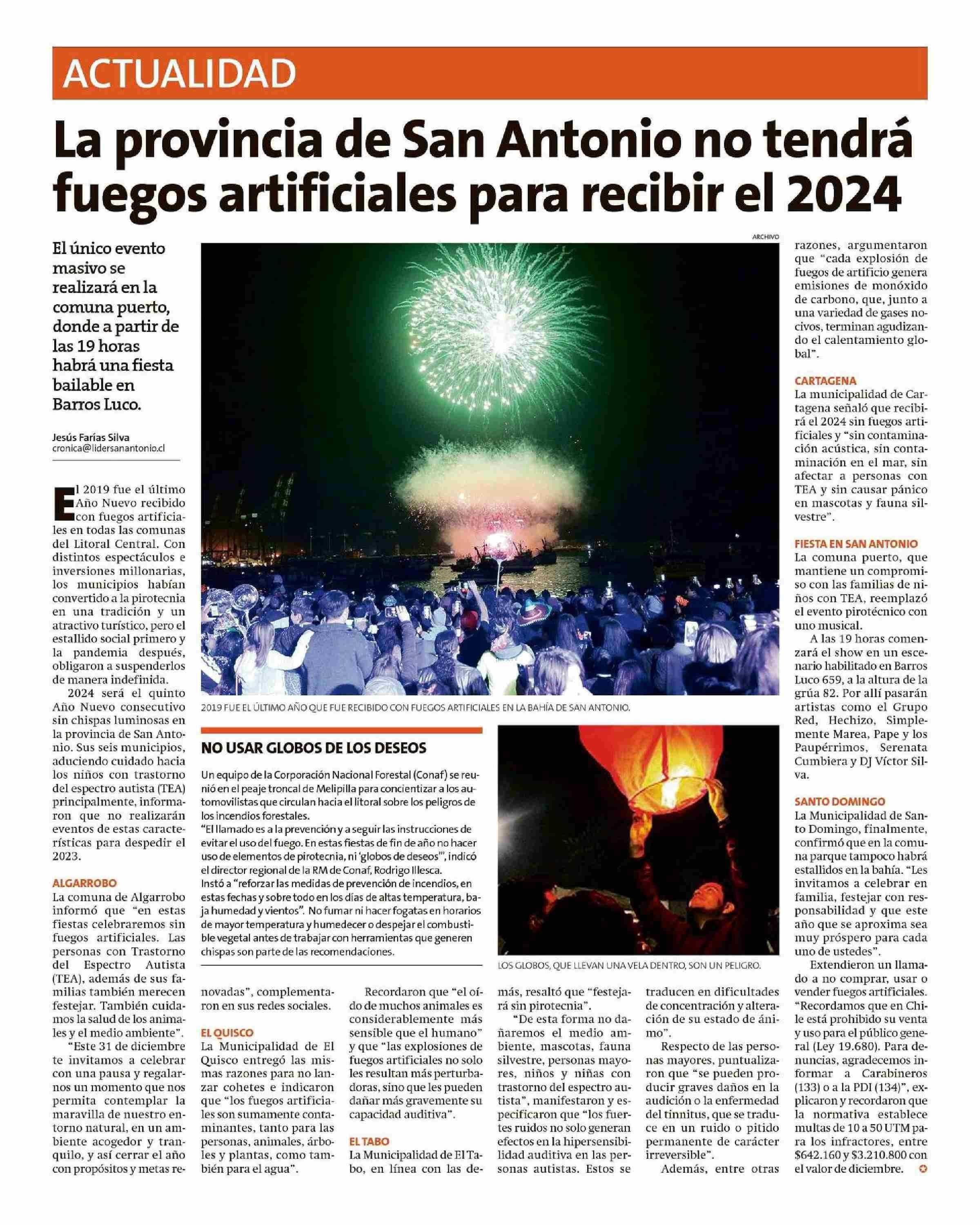 | Título: | La provincia de San Antonio no tendrá fuegos artificiales para recibir el 2024 |