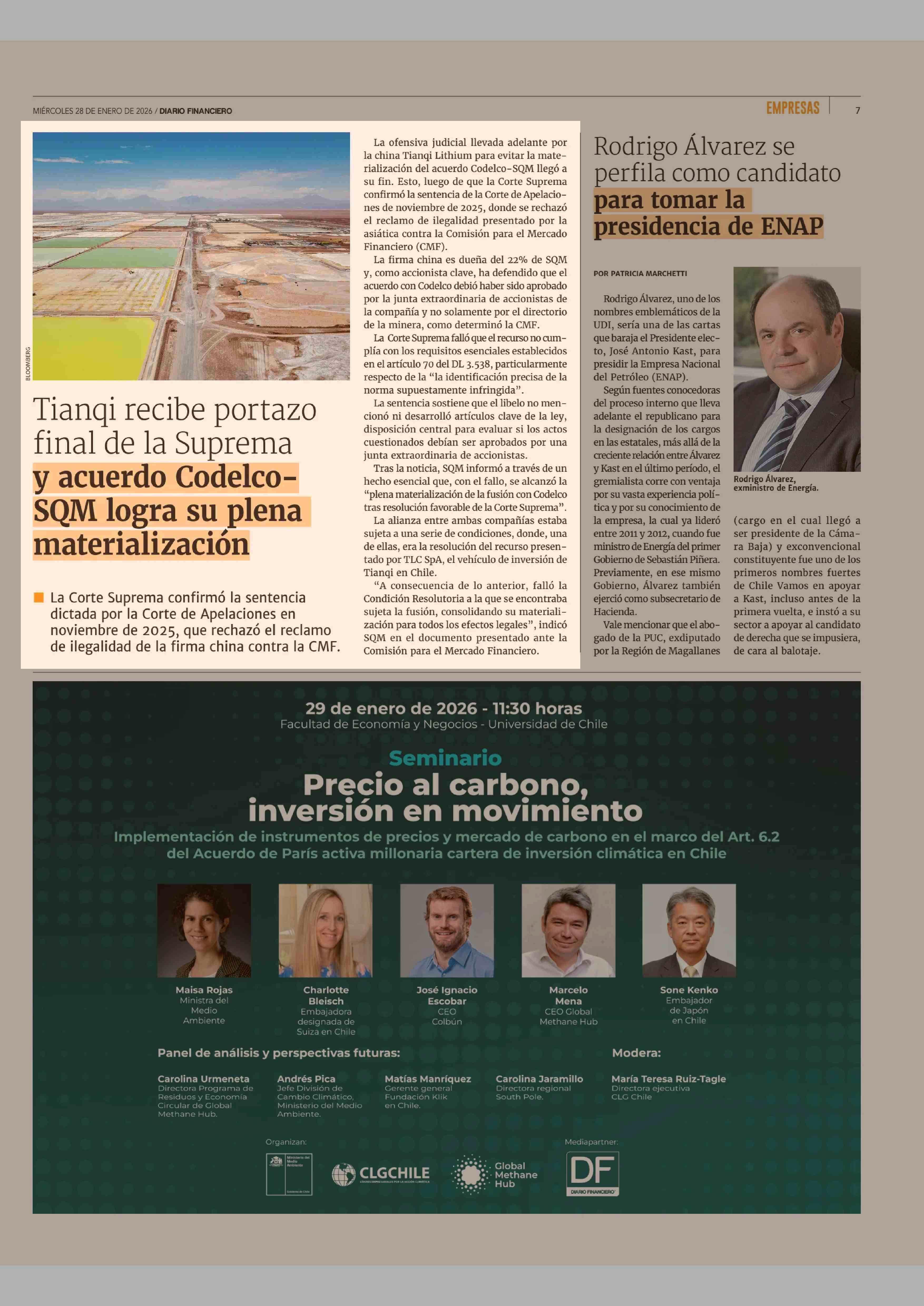 Tianqi recibe portazo final de la Suprema y acuerdo CodelcoSQM logra su plena materialización 28-01-2026 Diario Financiero |