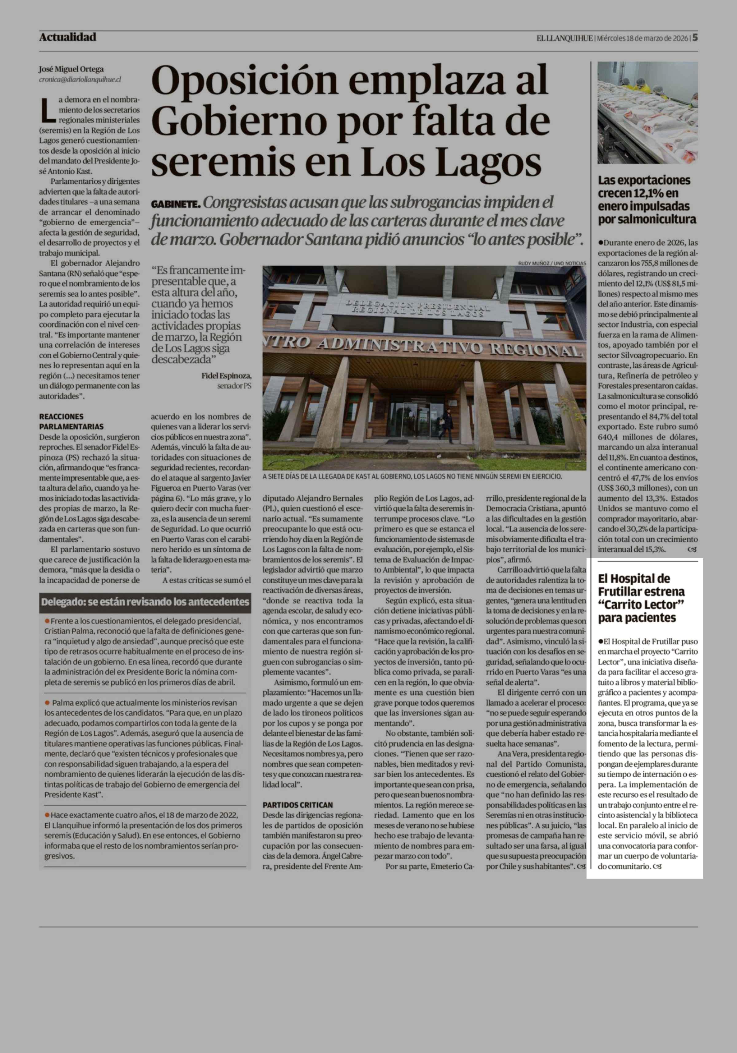 | Fecha: | 18-03-2026 | Sector: | Noticia general | Región: | Región de Los Lagos |
