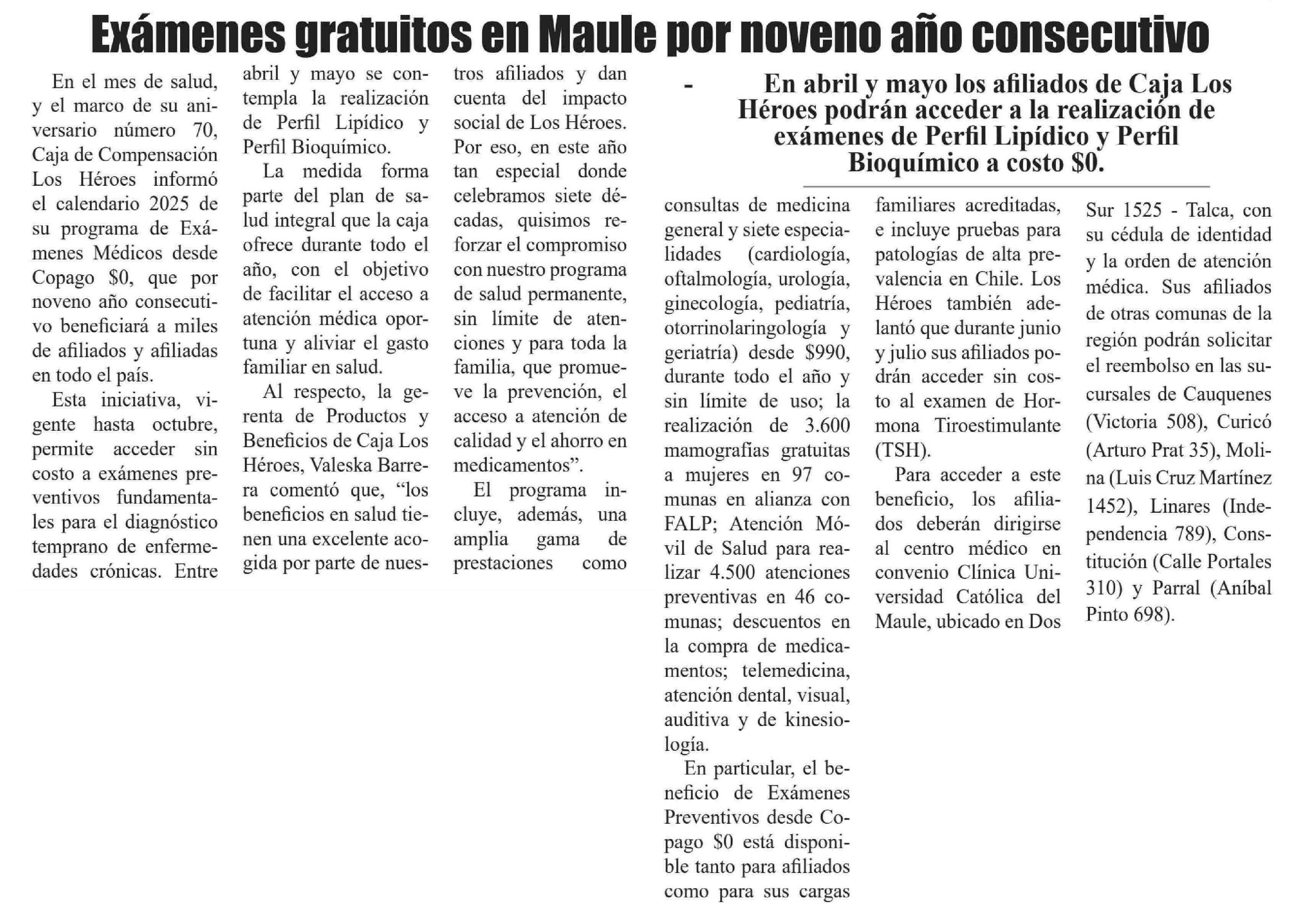 Exámenes gratuitos en Maule por noveno año consecutivo 24-04-2025 El Heraldo |