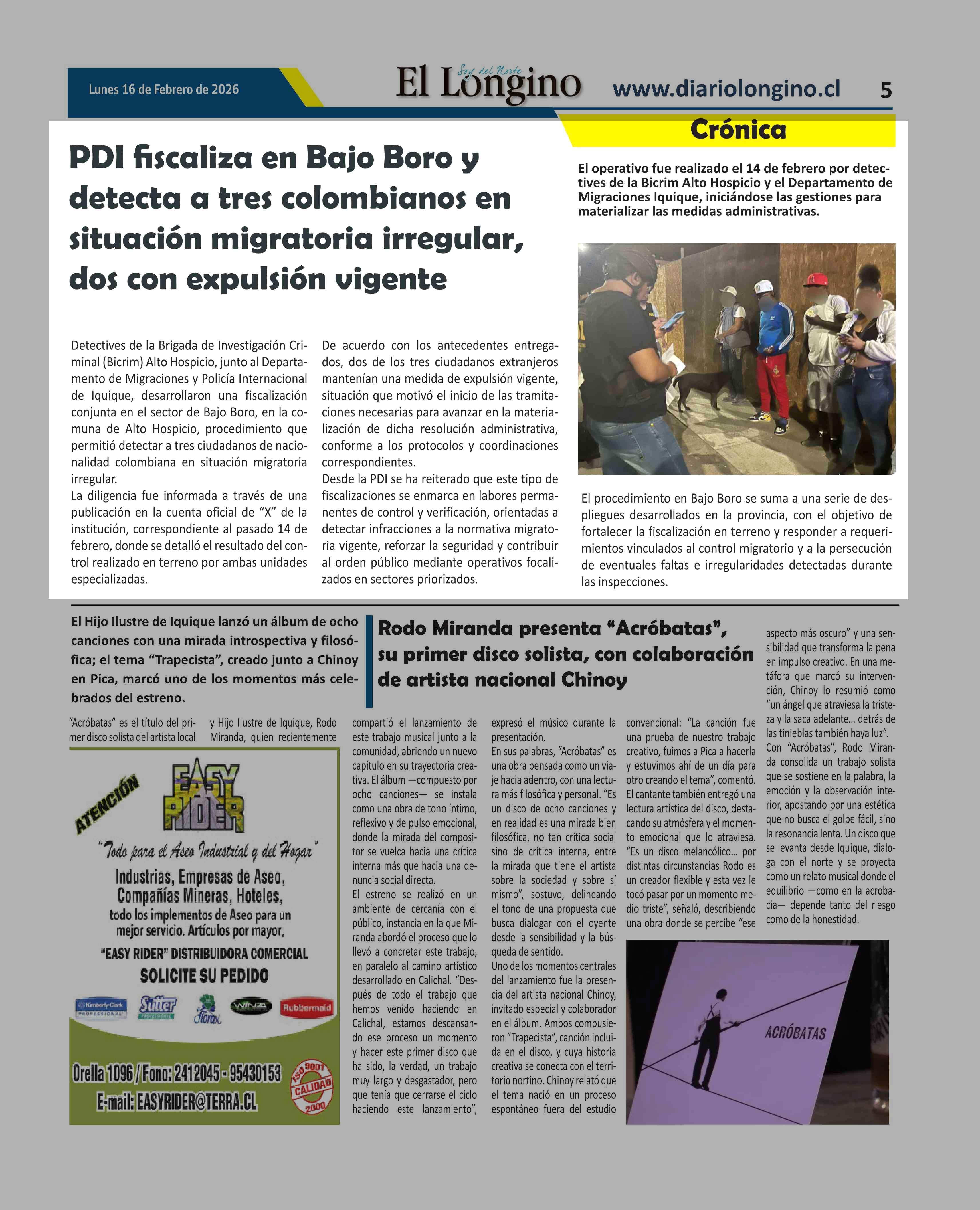 Fecha: 16-02-2026 Sector: Noticia general Región: Región de Tarapacá