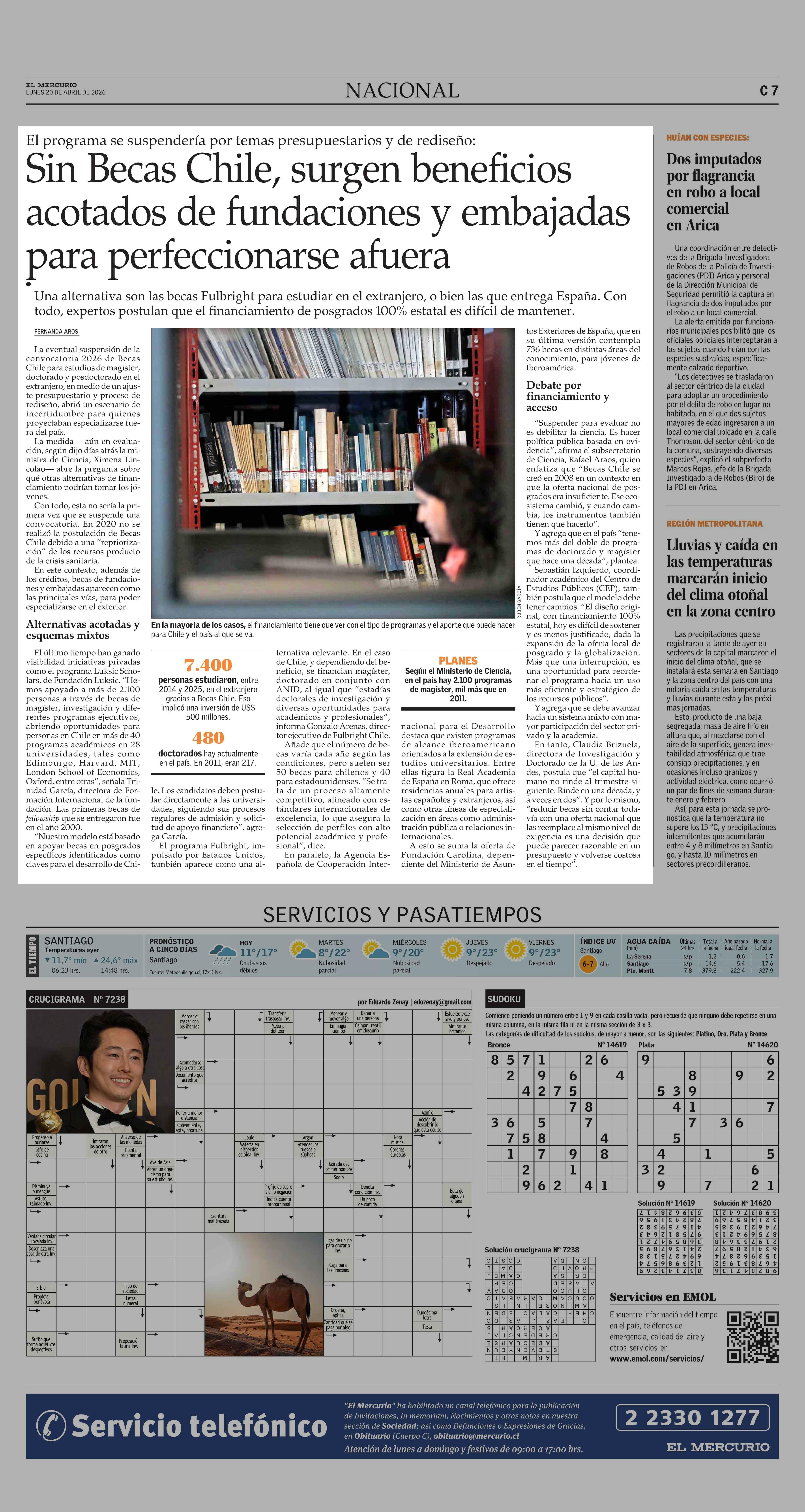 Sin Becas Chile, surgen beneficios acotados de fundaciones y embajadas para perfeccionarse afuera 20-04-2026 El Mercurio |