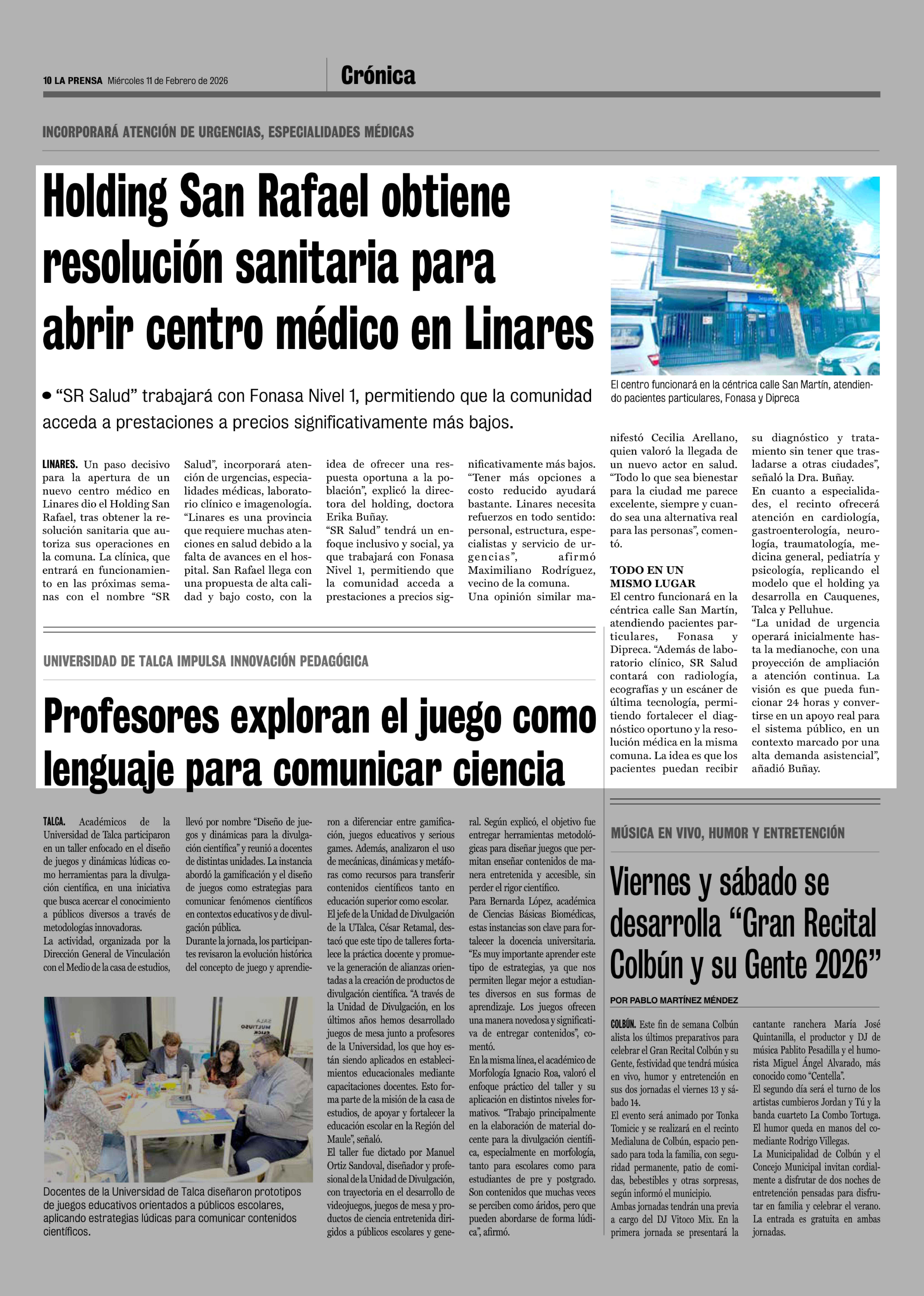 Holding San Rafael obtiene resolución sanitaria para abrir centro médico en Linares 11-02-2026 La Prensa de Curicó |