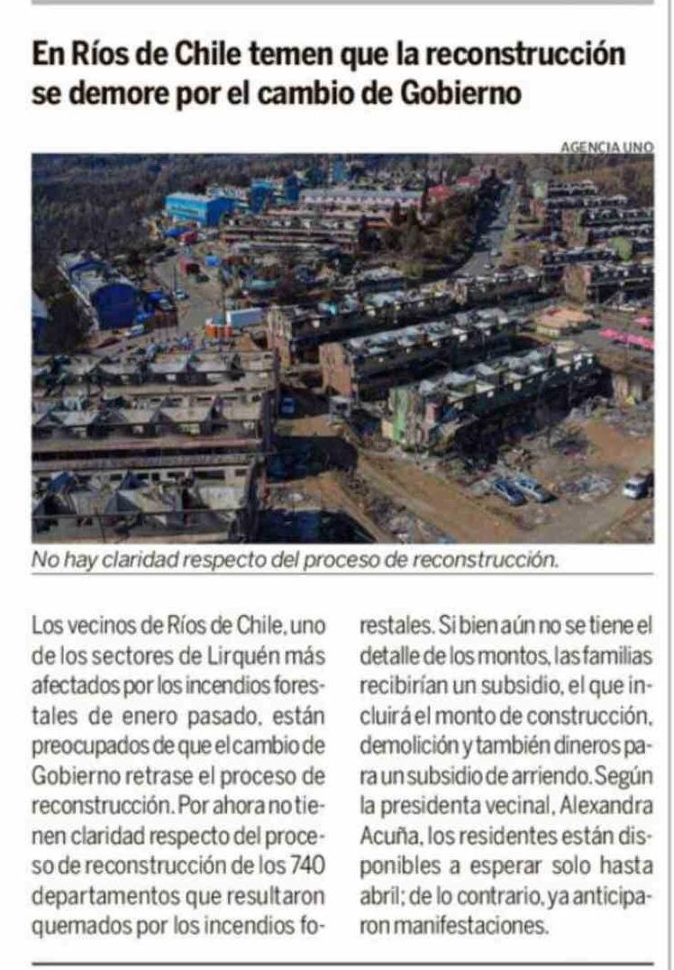 Título: En Ríos de Chile temen que la reconstrucción se demore por el cambio de Gobierno