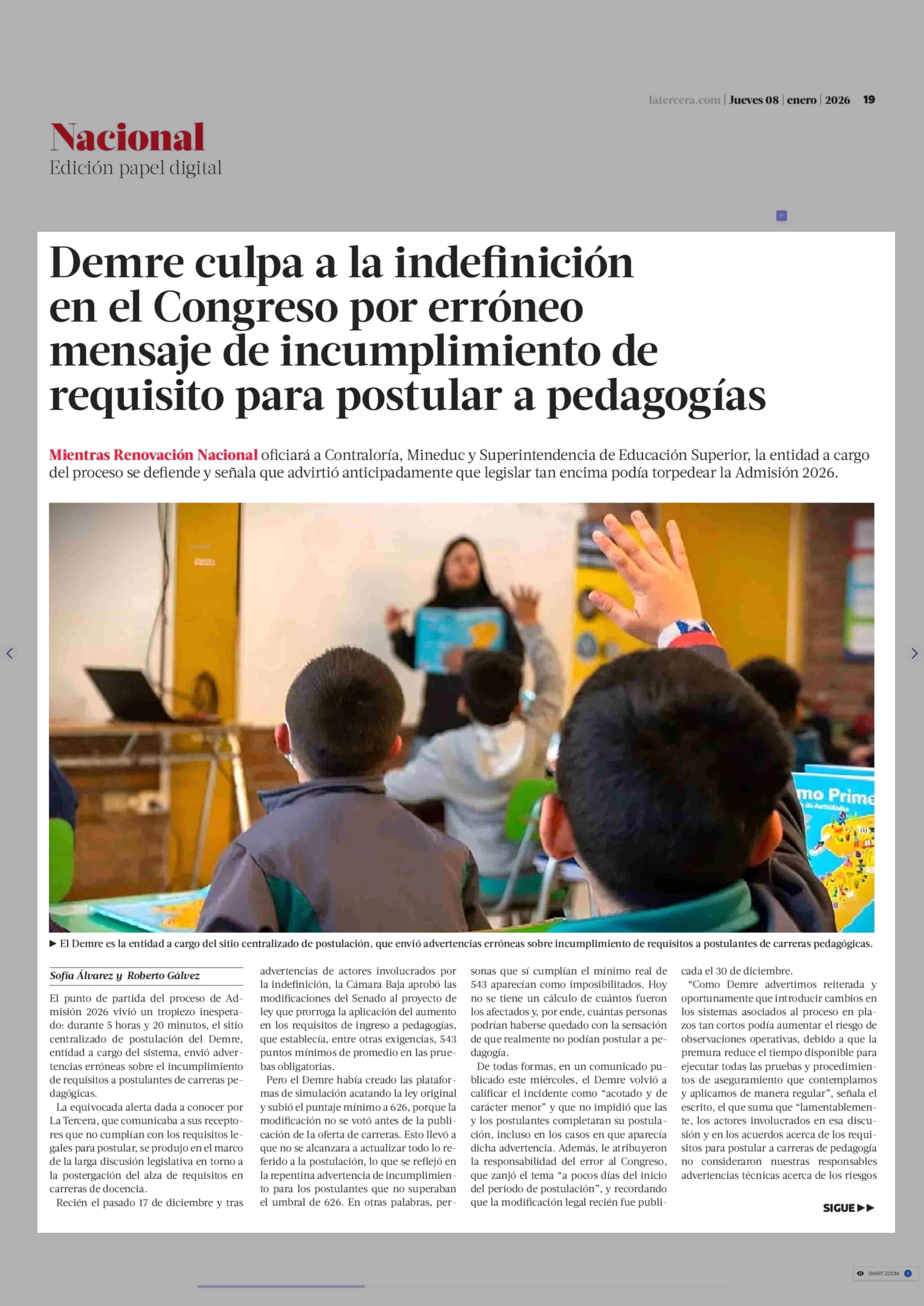Título: Demre culpa a la indefinición en el Congreso por erróneo mensaje de incumplimiento de requisito para postular a pedagogías