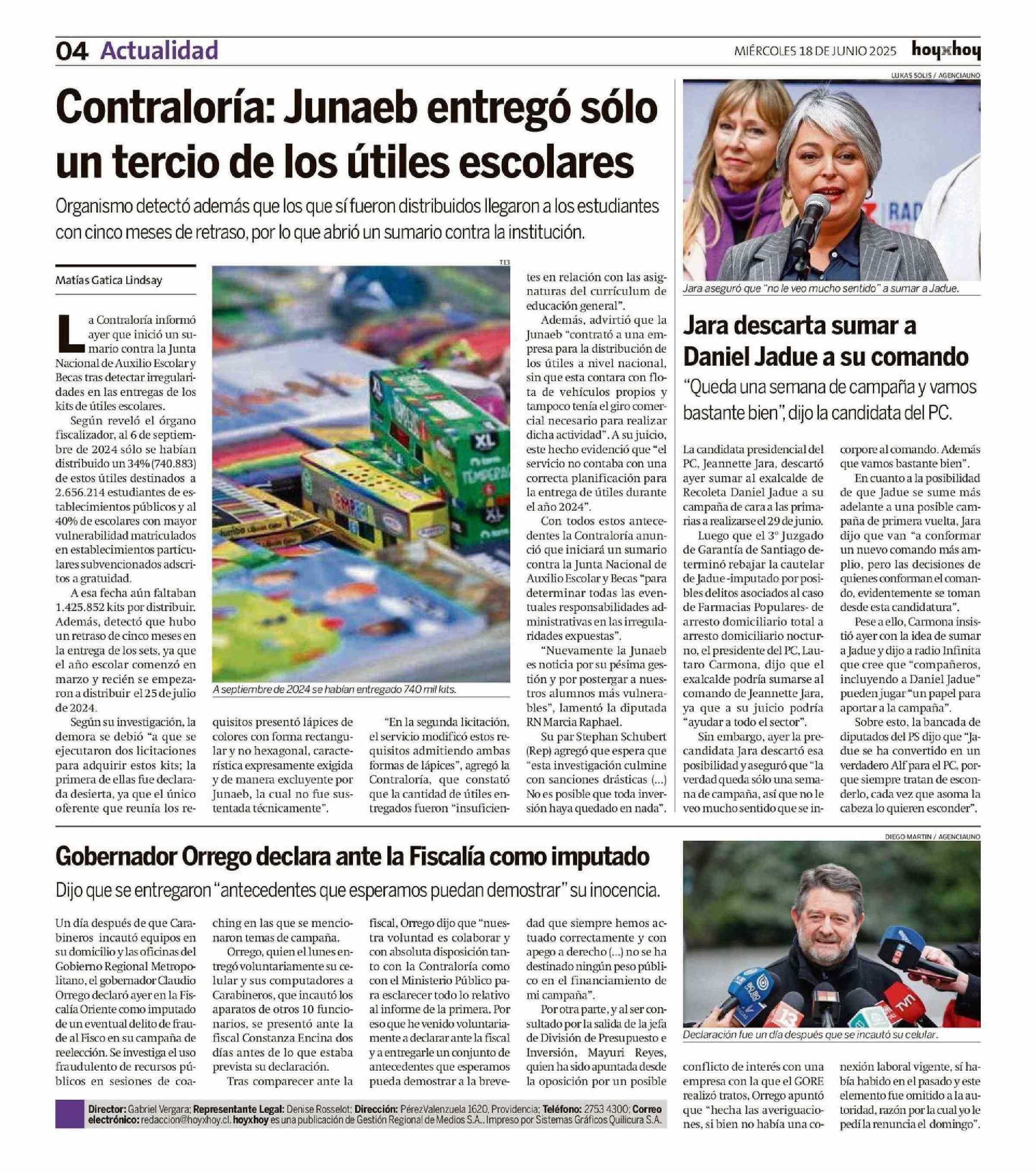 Jara descarta sumar a Daniel Jadue a su comando 18-06-2025 Hoy x Hoy Antofagasta |