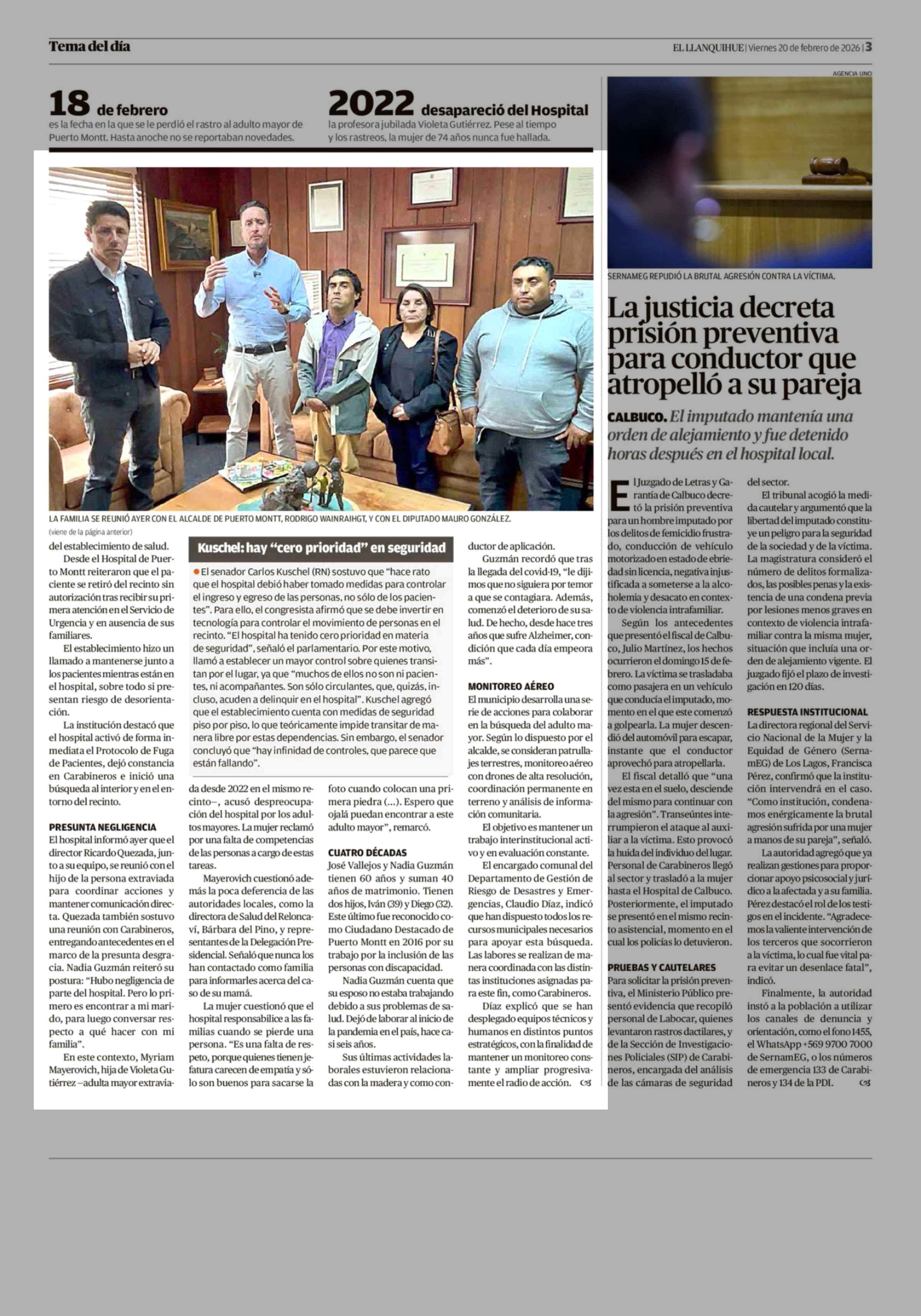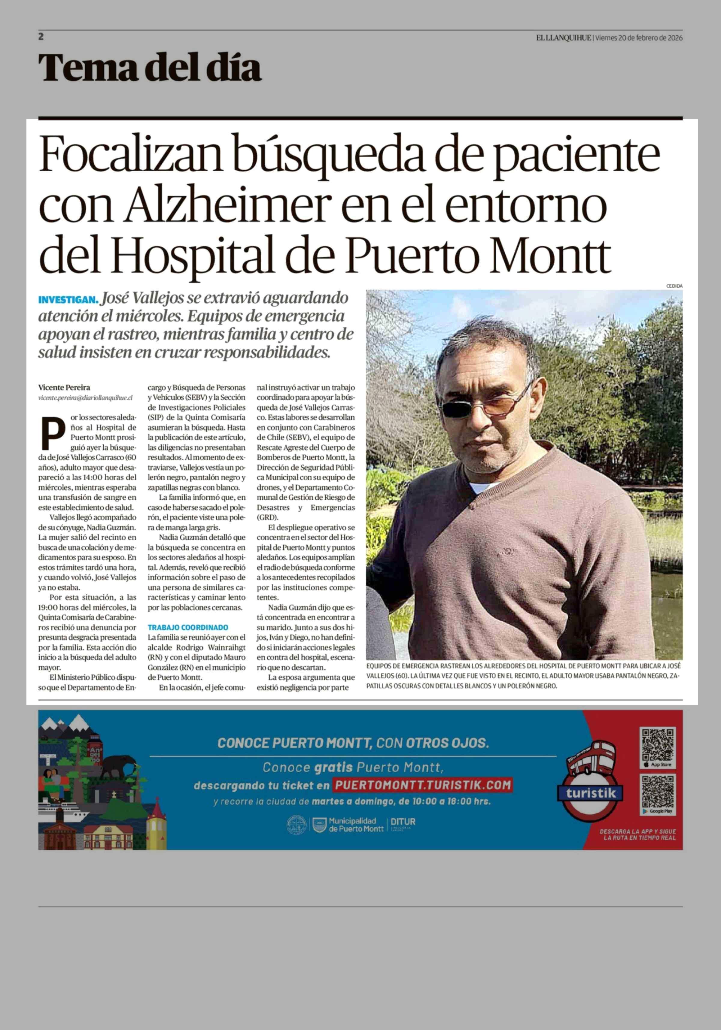 Focalizan búsqueda de paciente con Alzheimer en el entorno del Hospital de Puerto Montt 20-02-2026 El Llanquihue |