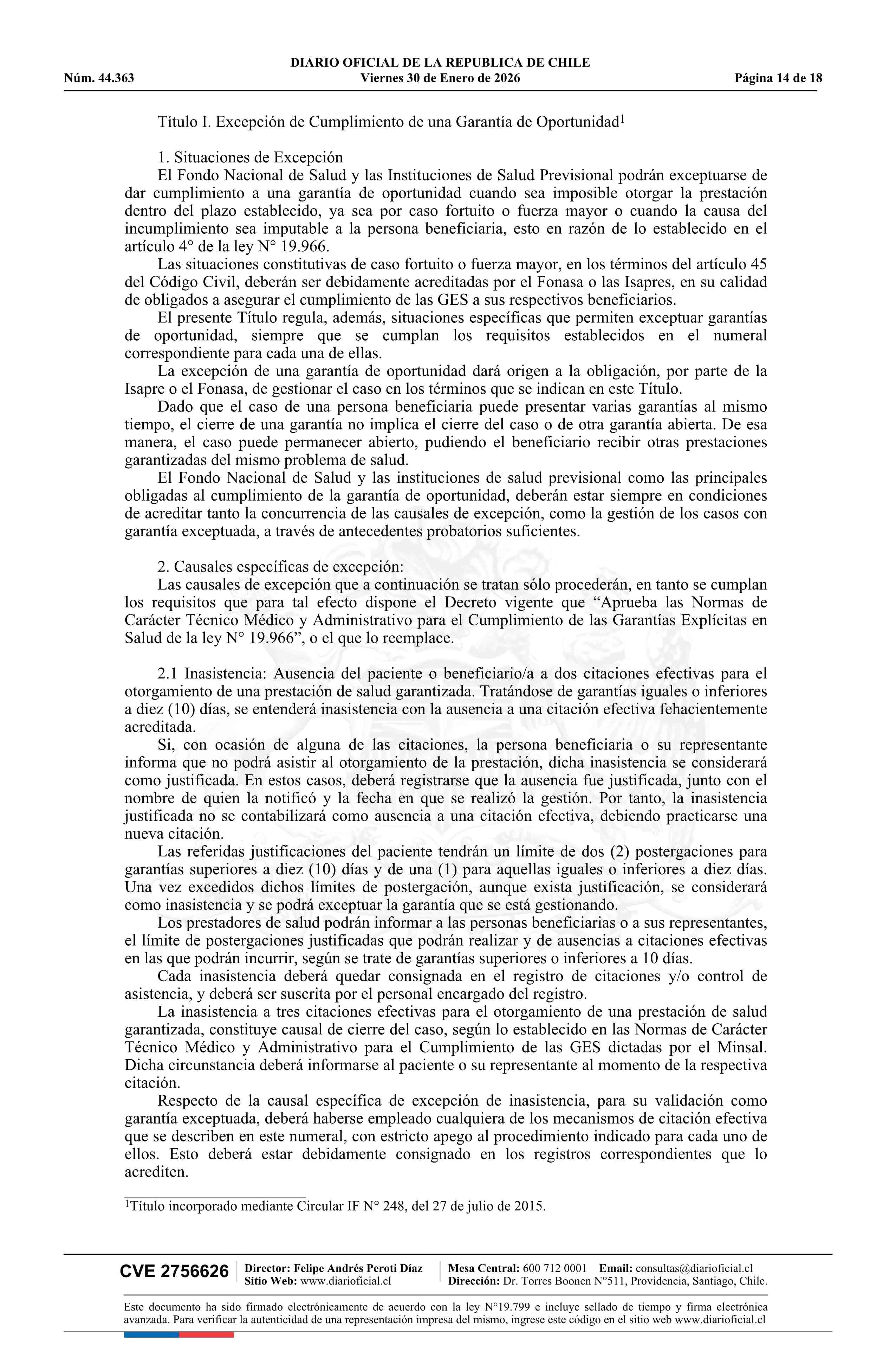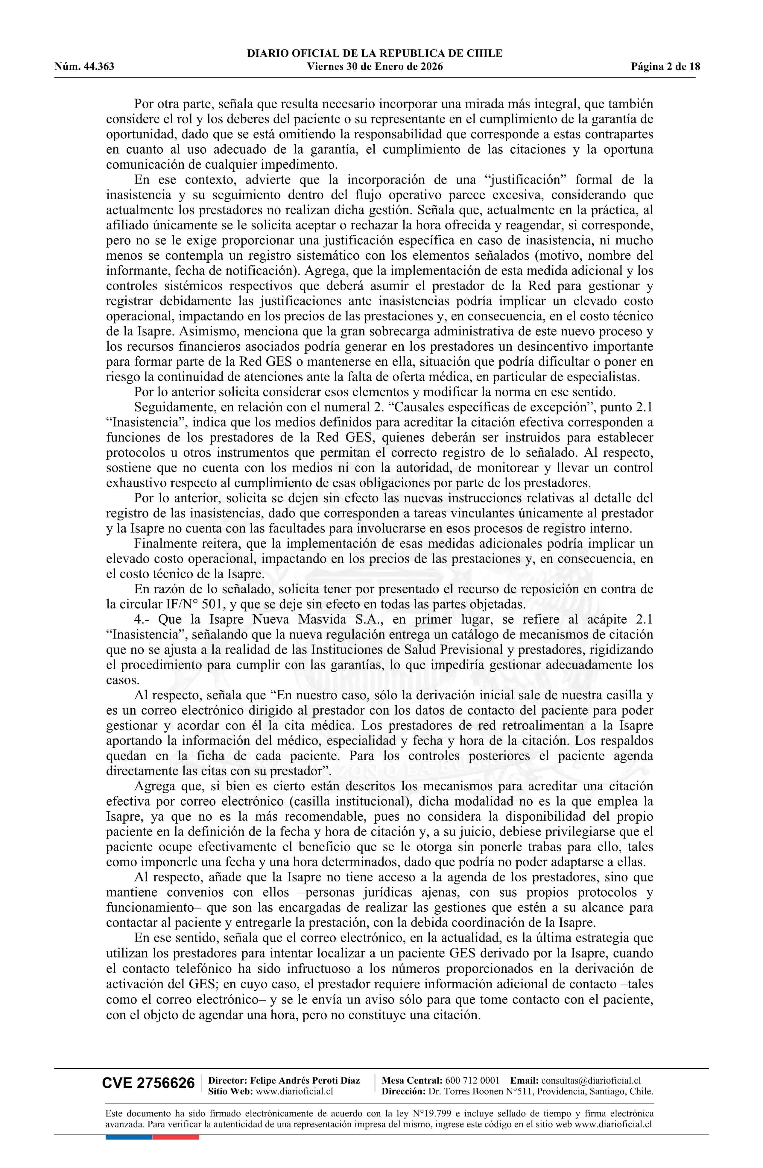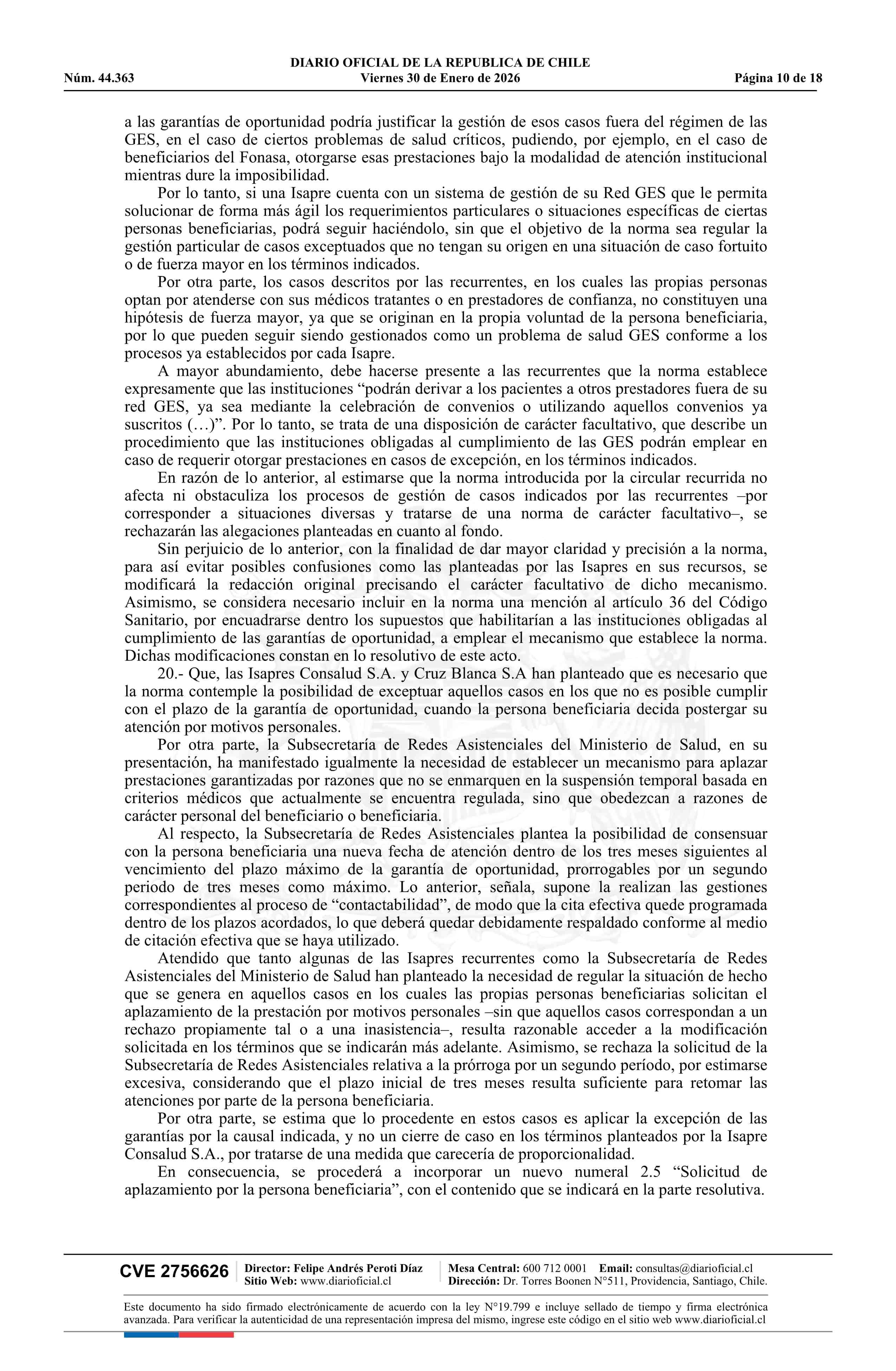 | Título: | Resolución exenta número IF 444, de 2026.- Acoge parcialmente los recursos de reposición deducidos por las isapres Colmena Golden Cross S.A., Nueva Masvida S.A., Cruz Blanca S.A. y Consalud S.A., y por la Subsecretaría de Redes Asistenciales, en contra de la circular IF/N° 501 de 2025 |