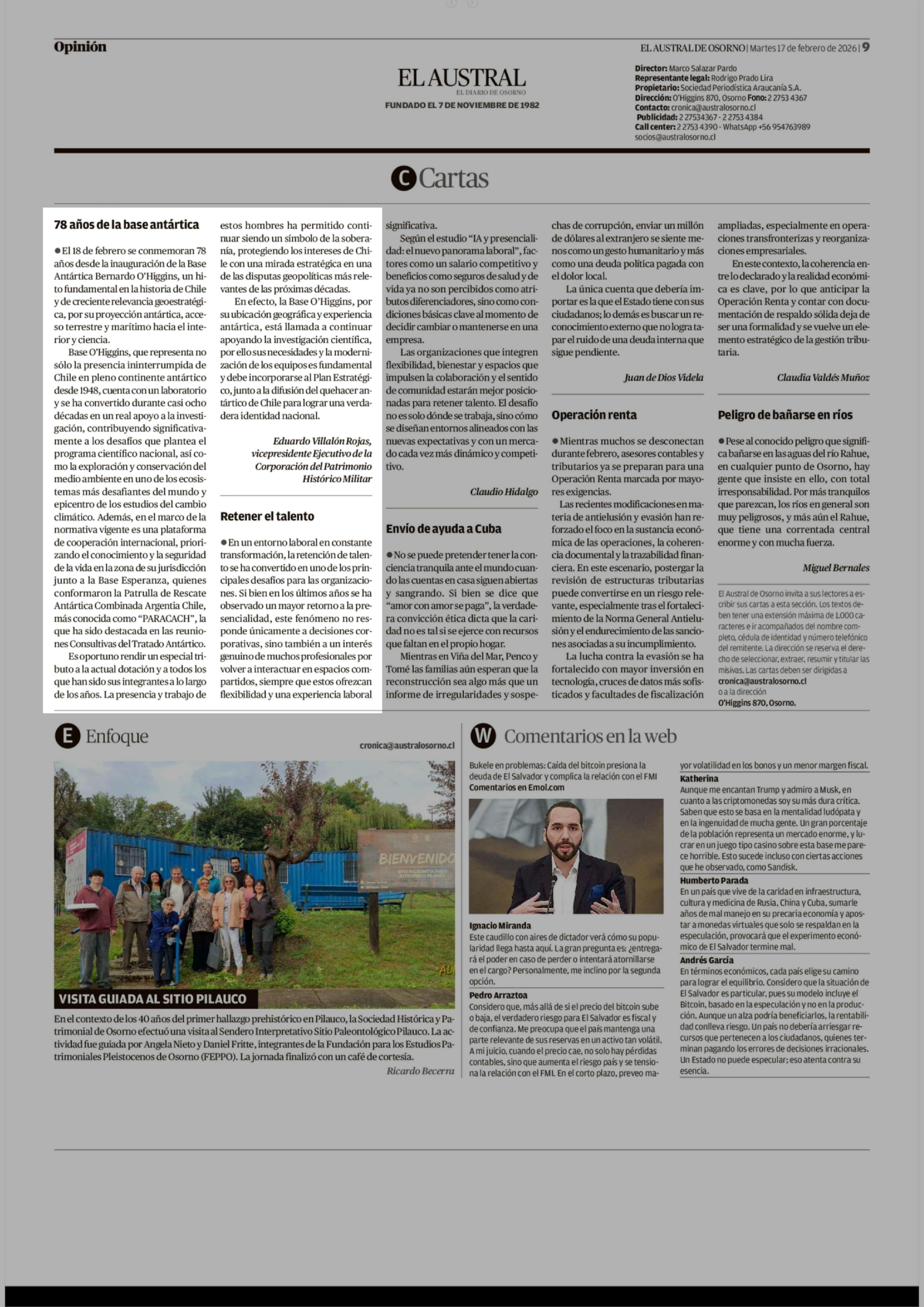 Cartas: 78 años de la base antártica 17-02-2026 El Austral de Osorno |