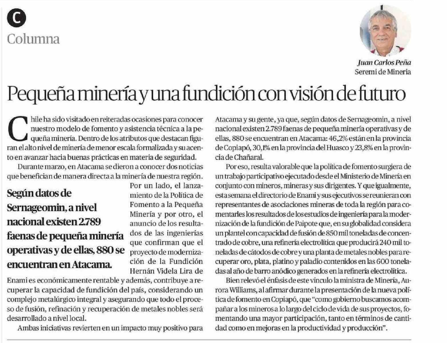 Pequeña minería y una fundición con visión de futuro 30-03-2025 El Diario de Atacama |
