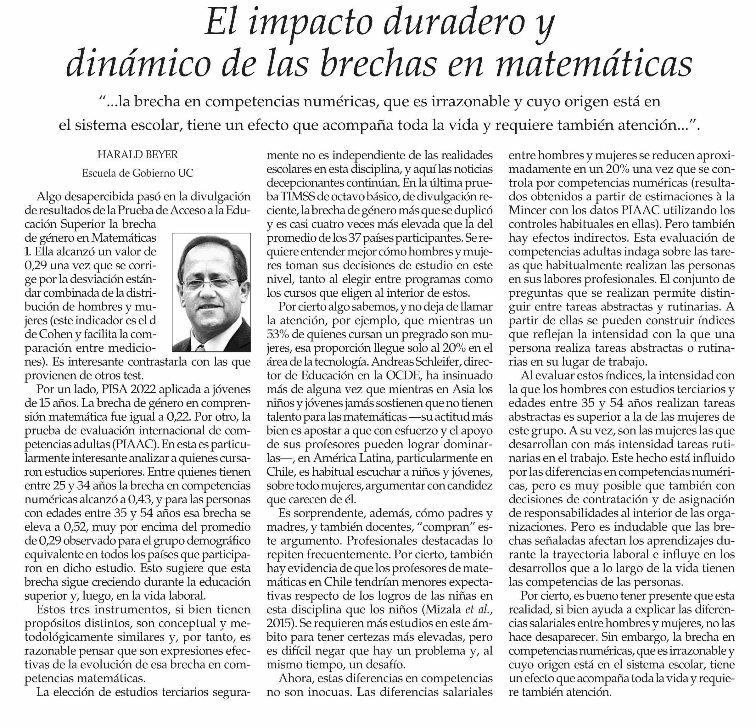 El impacto duradero y dinámico de las brechas en matemáticas 13-01-2025 El Mercurio |