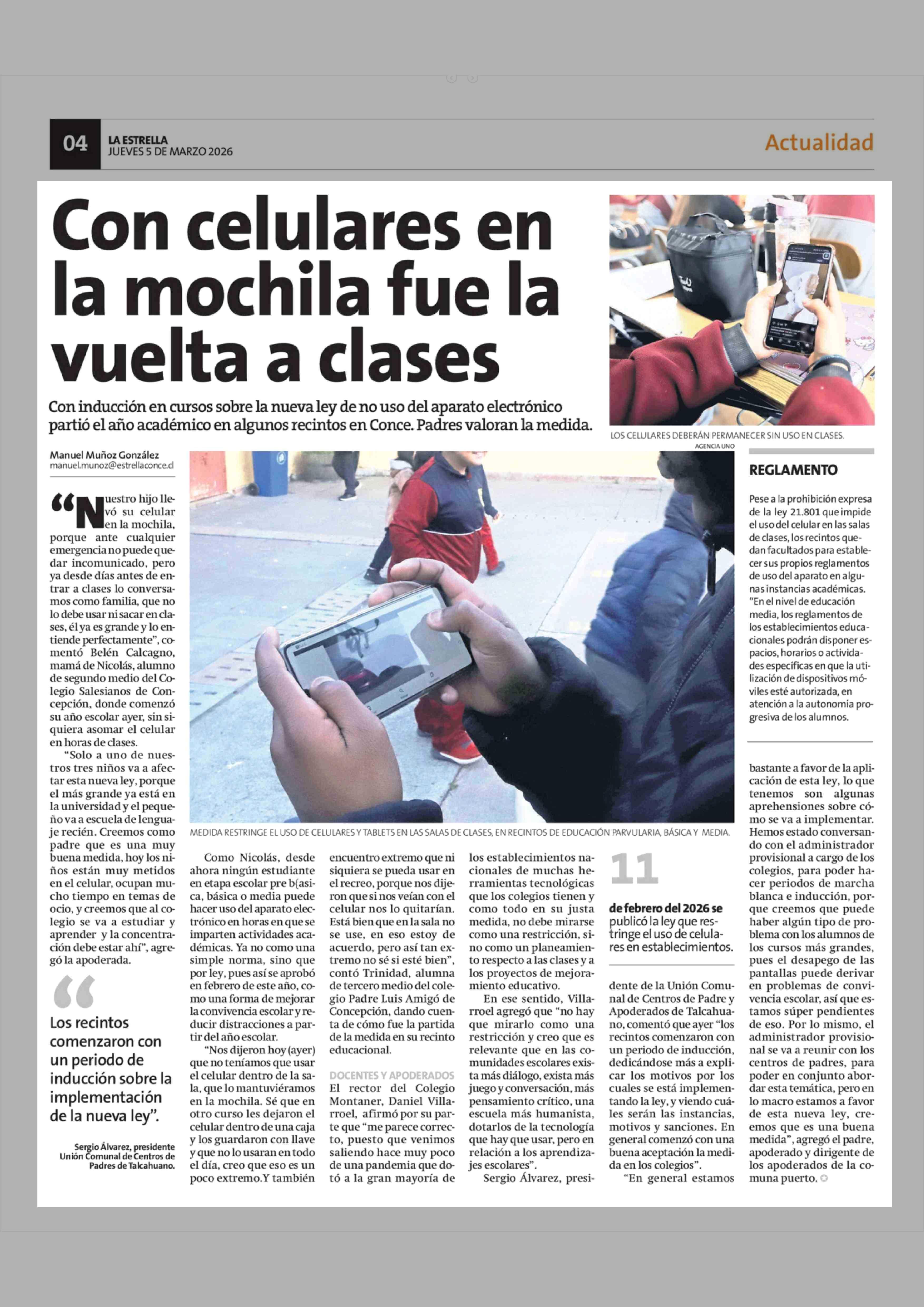 Con celulares en la mochila fue la vuelta a clases 05-03-2026 La Estrella de Concepción |