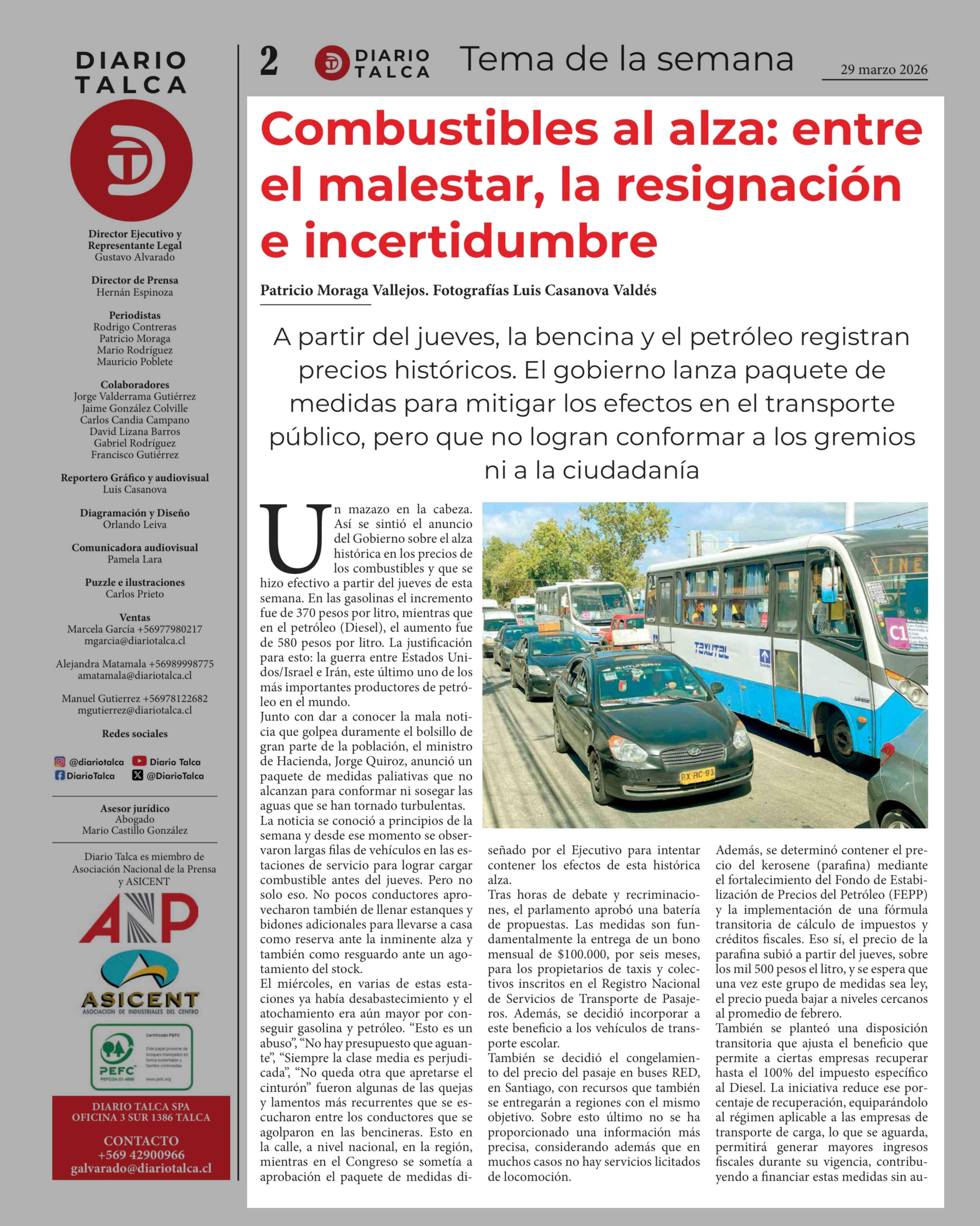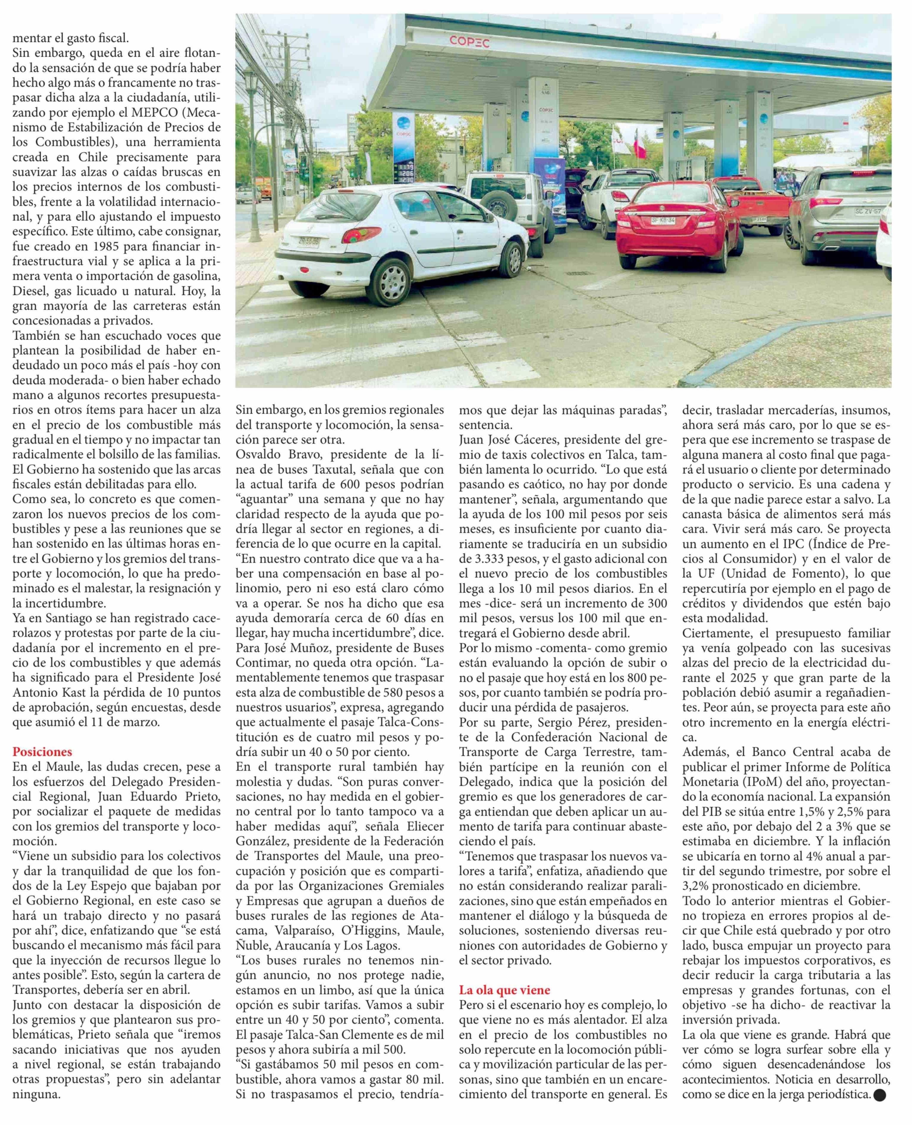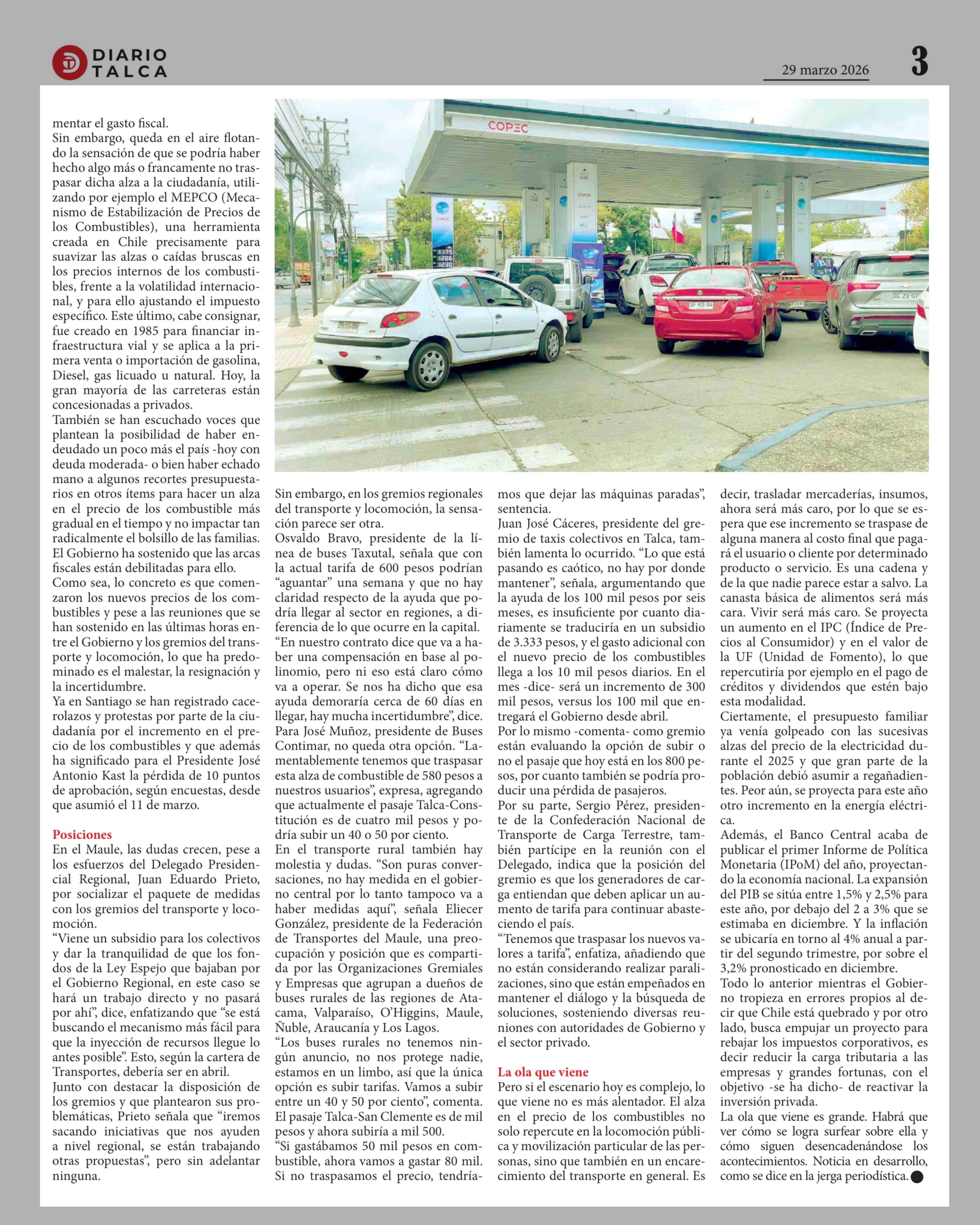 Combustibles al alza: entre el malestar, la resignación e incertidumbre 29-03-2026 Diario Talca |