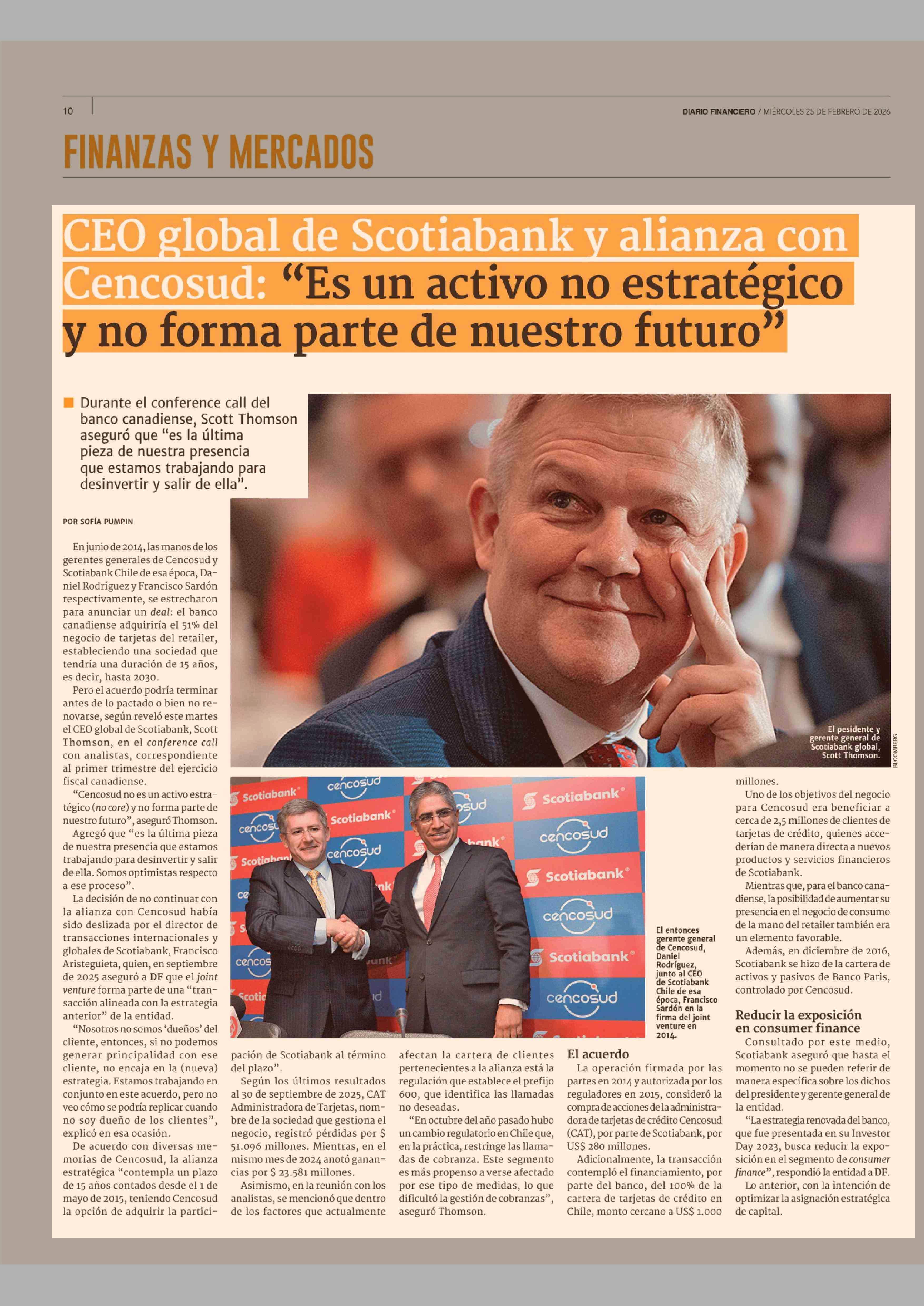 Título: CEO global de Scotiabank y alianza con Cencosud: "Es un activo no estratégico y no forma parte de nuestro futuro'