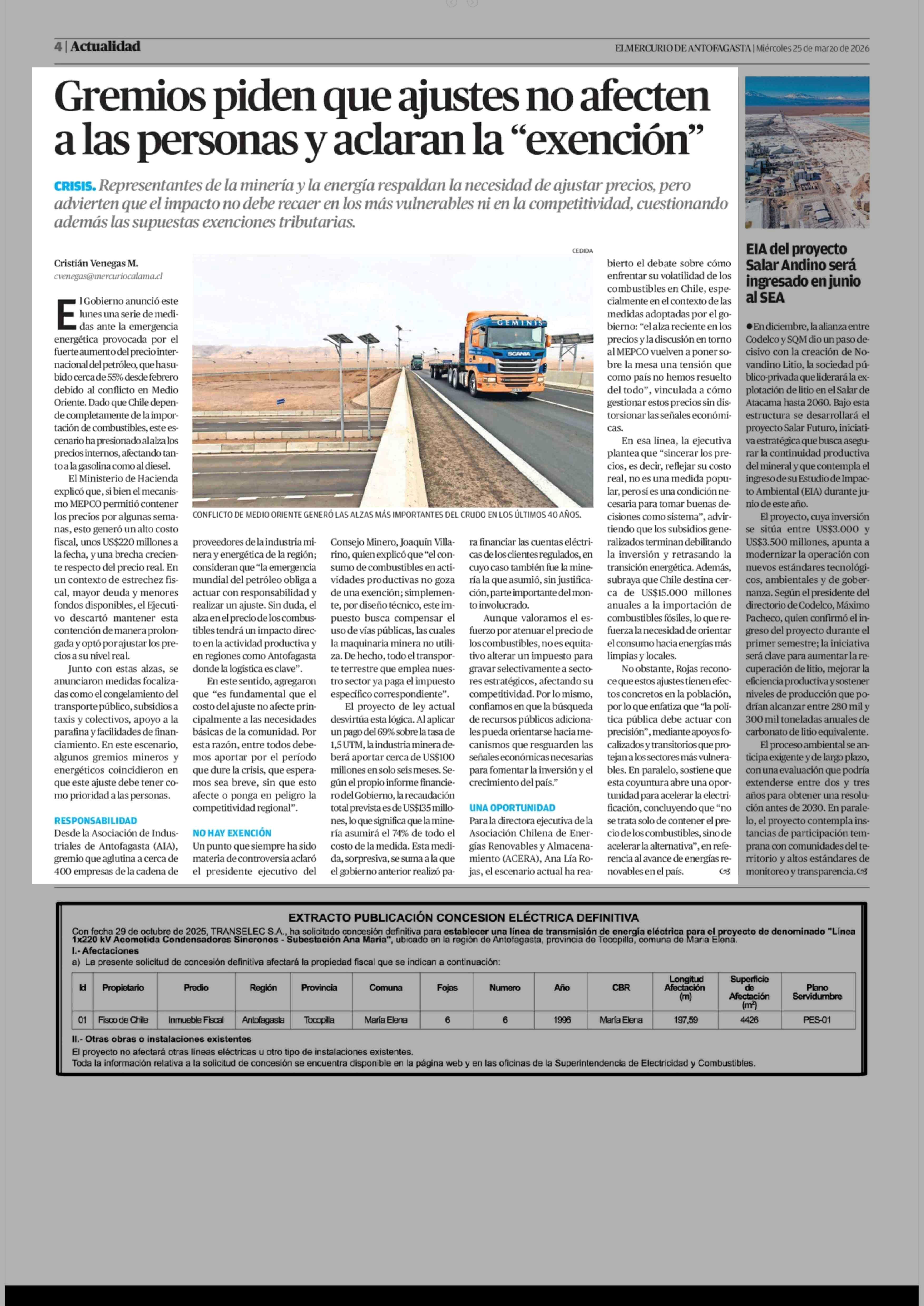 Fecha: 25-03-2026 Sector: Noticia general Región: Región de Antofagasta