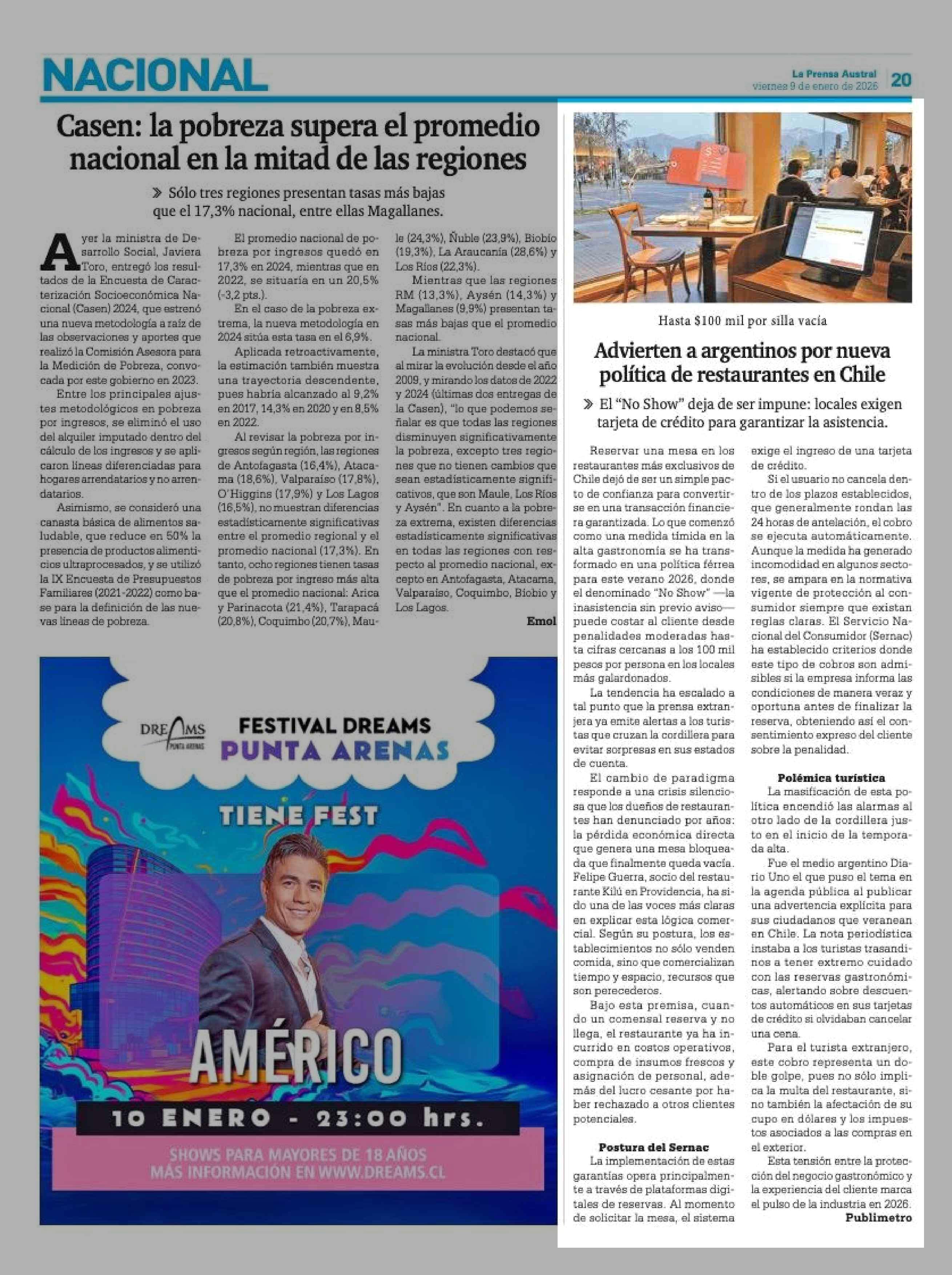 Advierten a argentinos por nueva política de restaurantes en Chile 09-01-2026 La Prensa Austral |