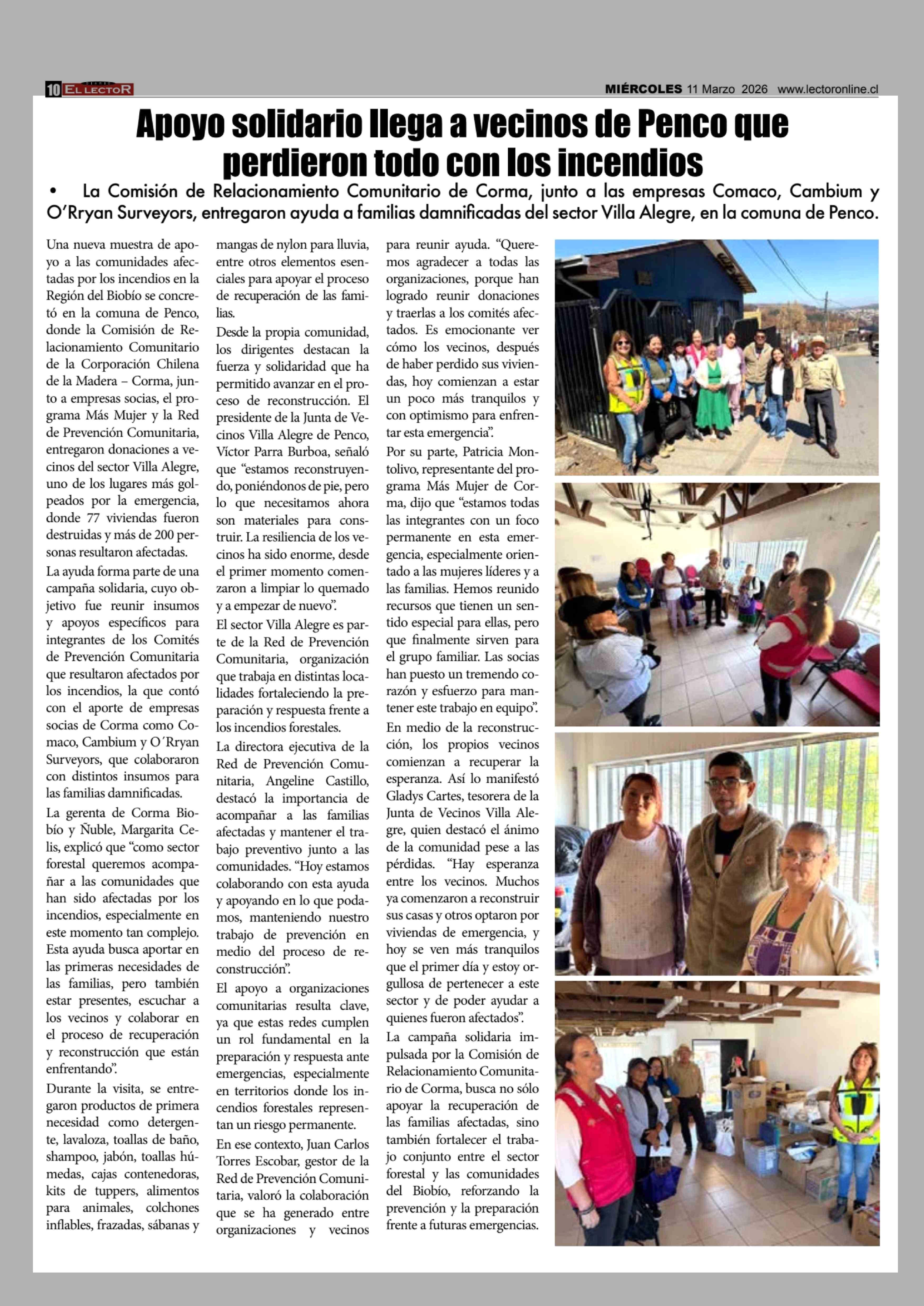Apoyo solidario llega a vecinos de Penco que perdieron todo con los incendios 11-03-2026 El Lector |