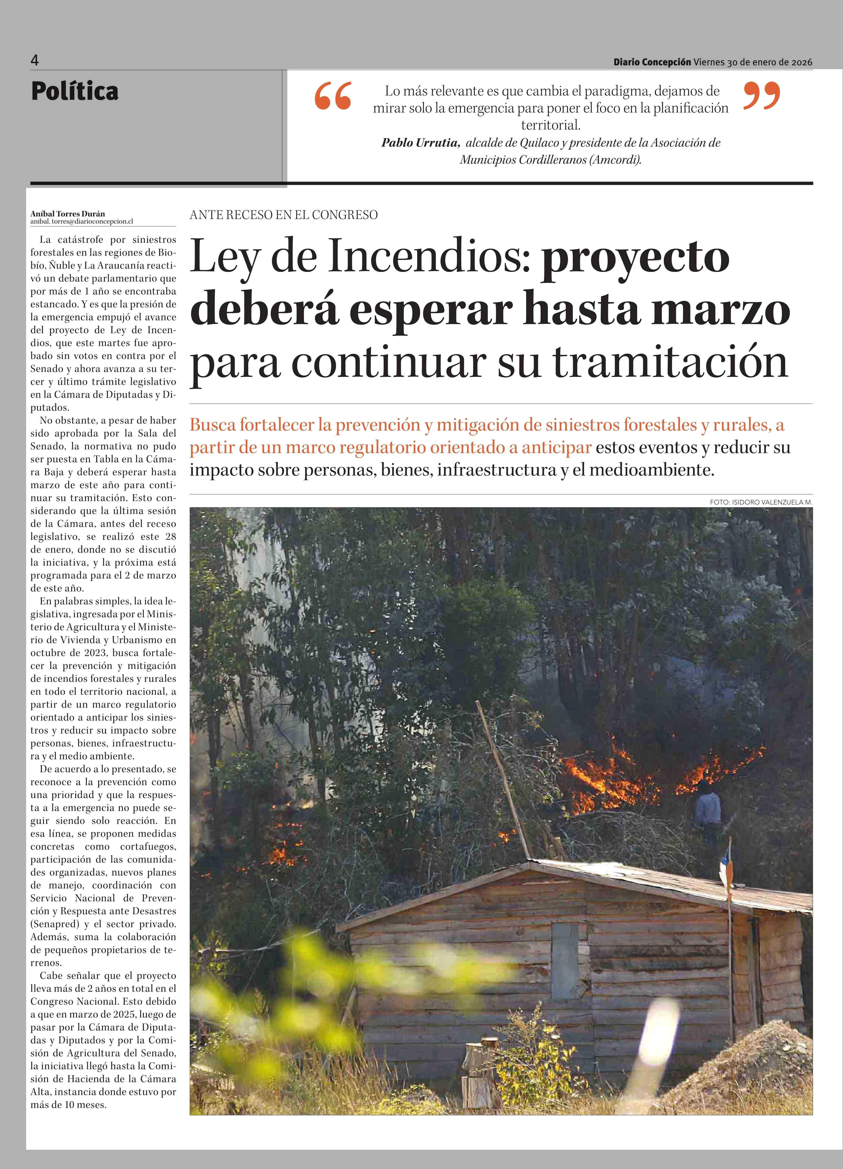 Título: Ley de Incendios: proyecto deberá esperar hasta marzo para continuar su tramitación
