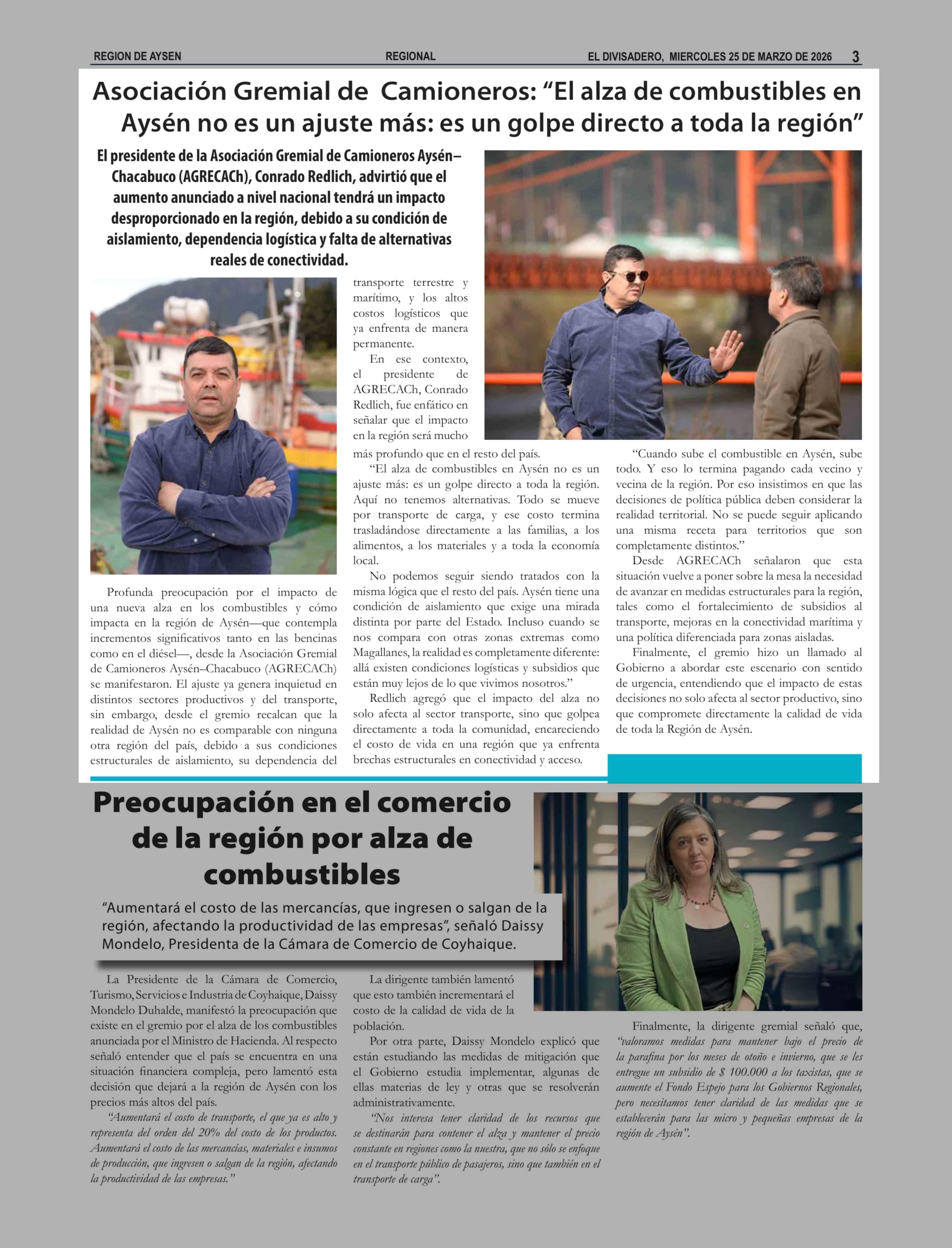 Asociación Gremial de Camioneros: "El alza de combustibles en Aysén no es un ajuste más: es un golpe directo a toda la región" 25-03-2026 El Divisadero |