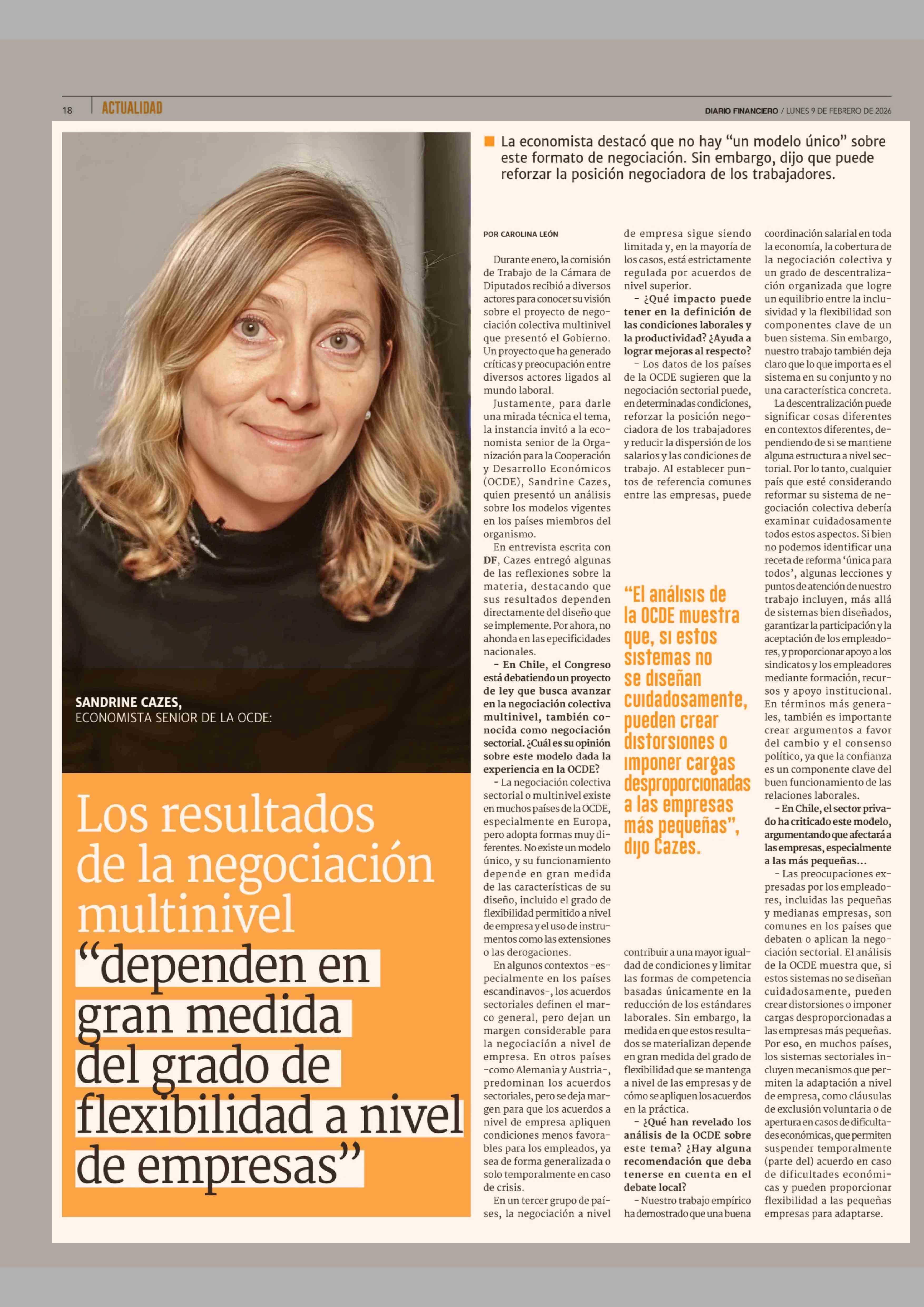 Los resultados de la negociación multinivel "dependen en gran medida del grado de flexibilidad a nivel de empresas" 09-02-2026 Diario Financiero |