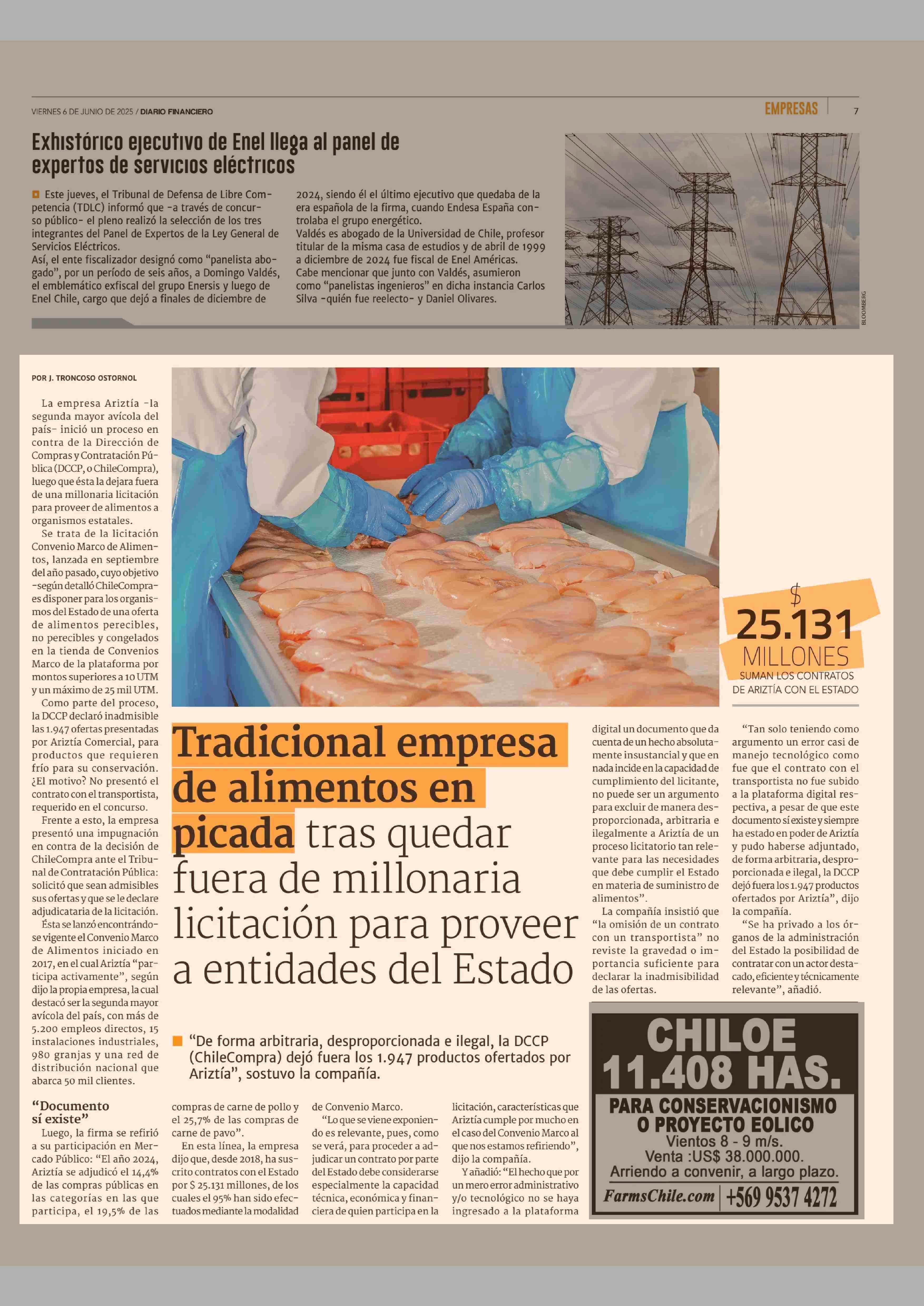 Título: Tradicional empresade alimentos en picada tras quedar fuera de millonaria licitación para proveer a entidades del Estado