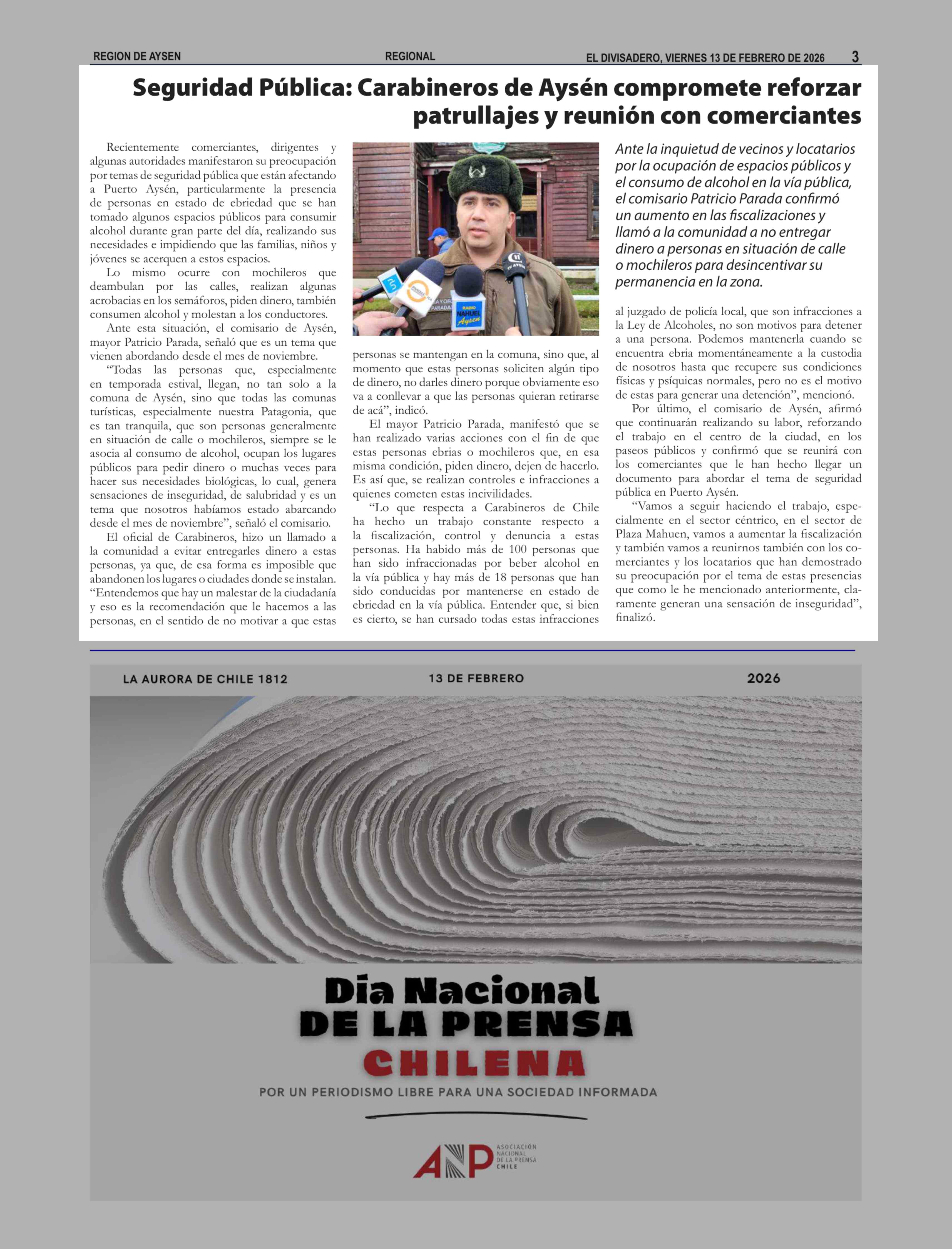 | Fecha: | 13-02-2026 | Sector: | Noticia general | Región: | Región Aysén del General Carlos Ibáñez del Campo |