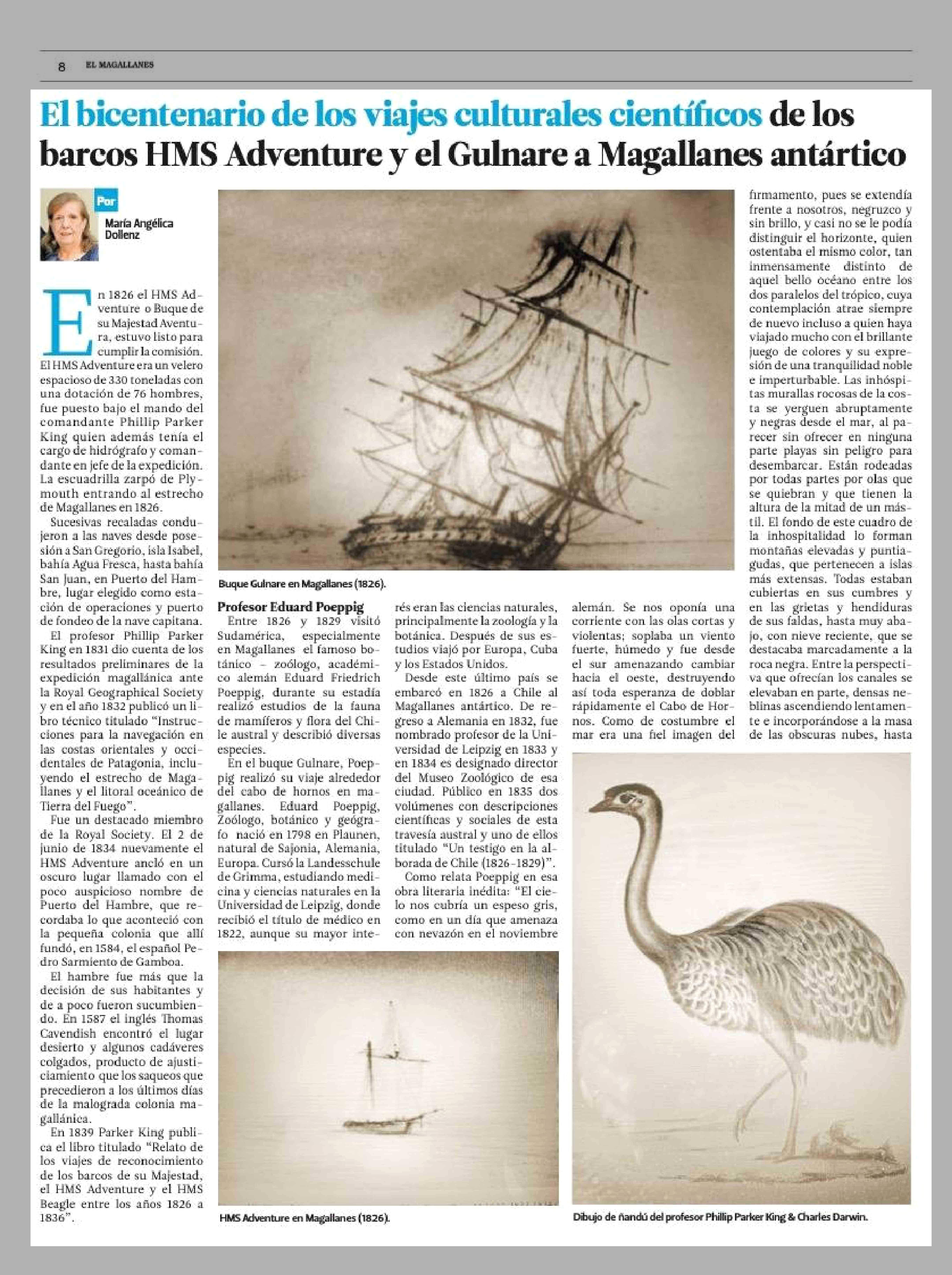 Título: El bicentenario de los viajes culturales científicos de los barcos HMS Adventure y el Gulnare a Magallanes antártico