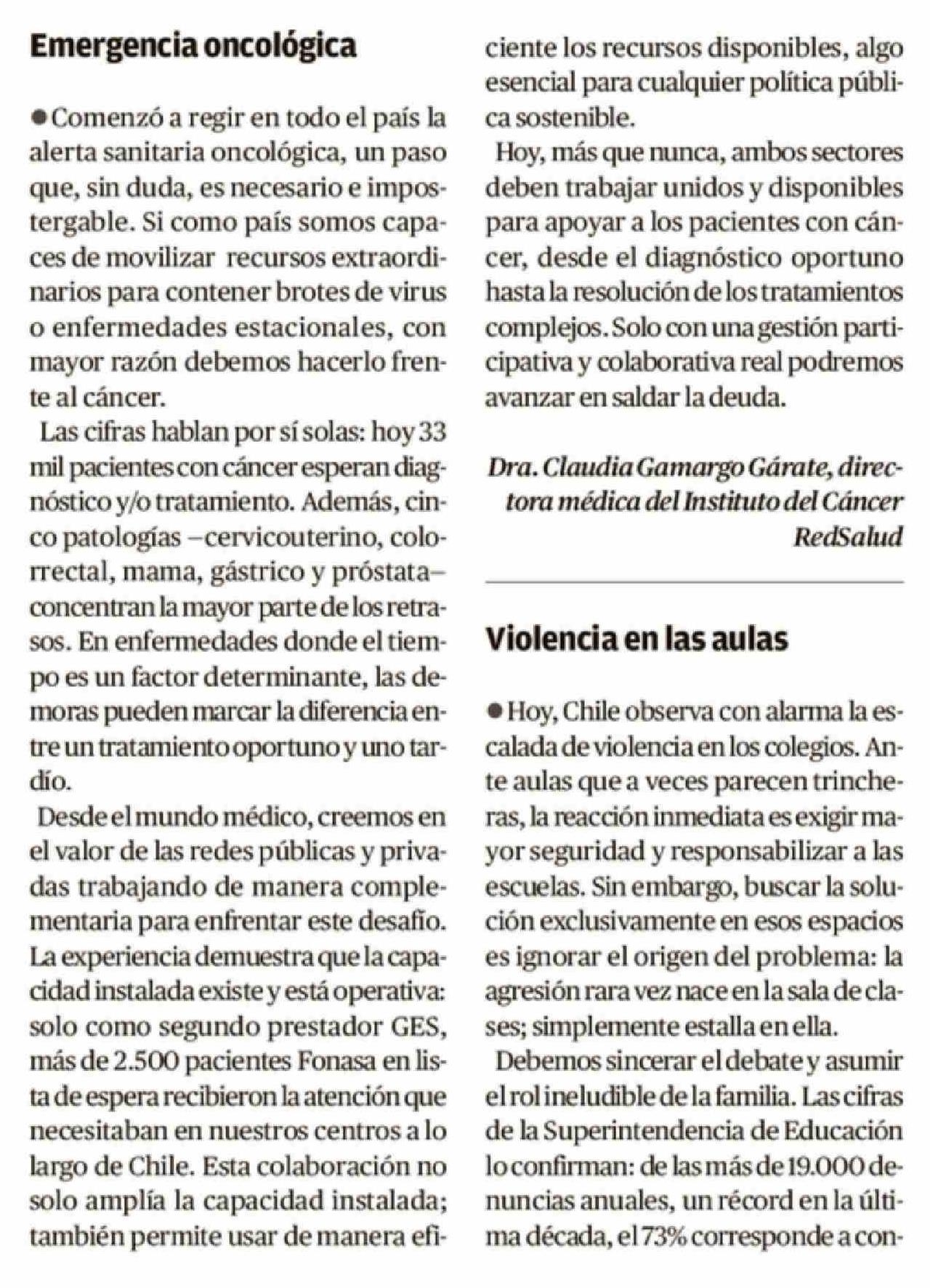 Cartas: Emergencia oncológica