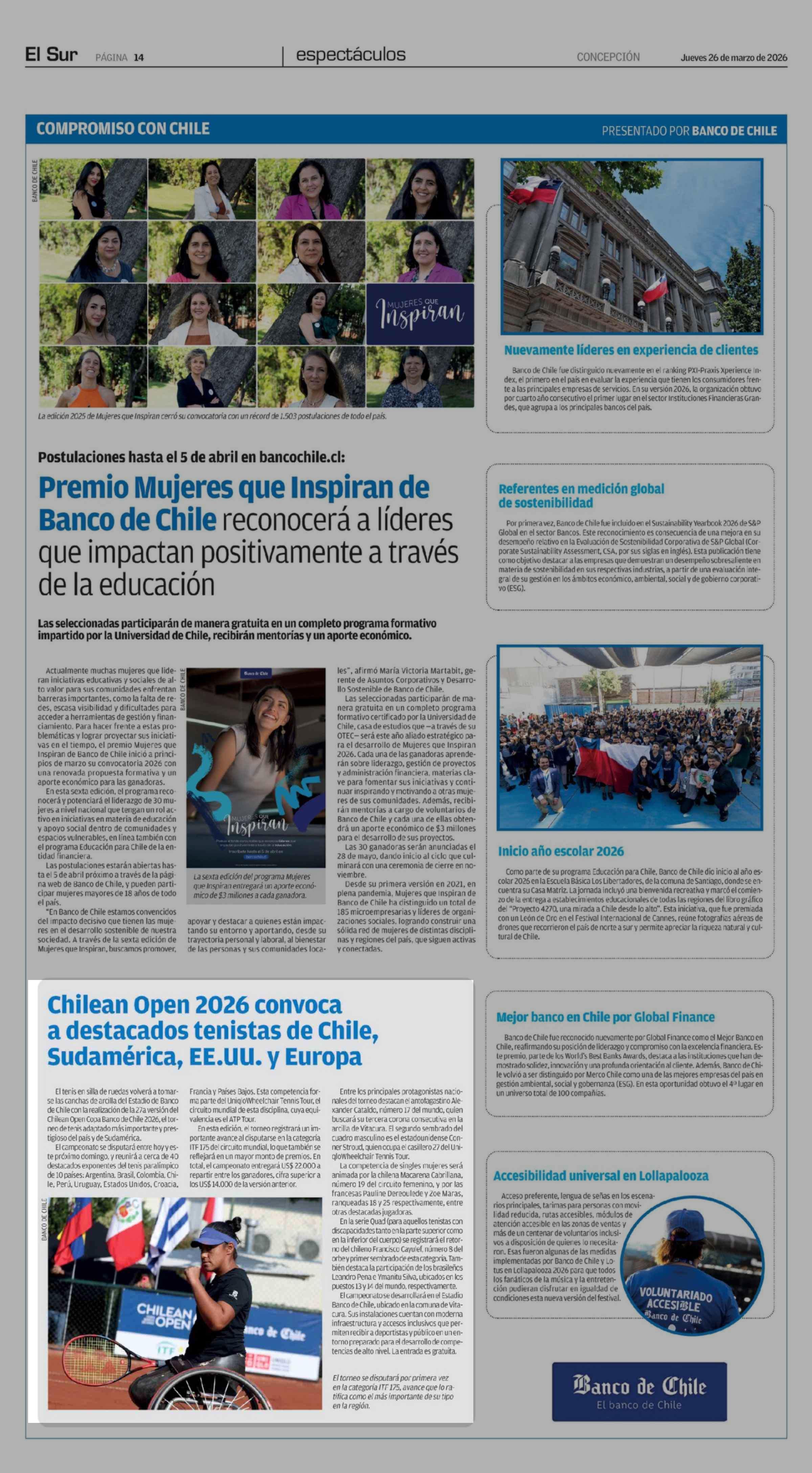 Chilean Open 2026 convoca a destacados tenistas de Chile, Sudamérica, EE.UU. y Europa 26-03-2026 El Sur |