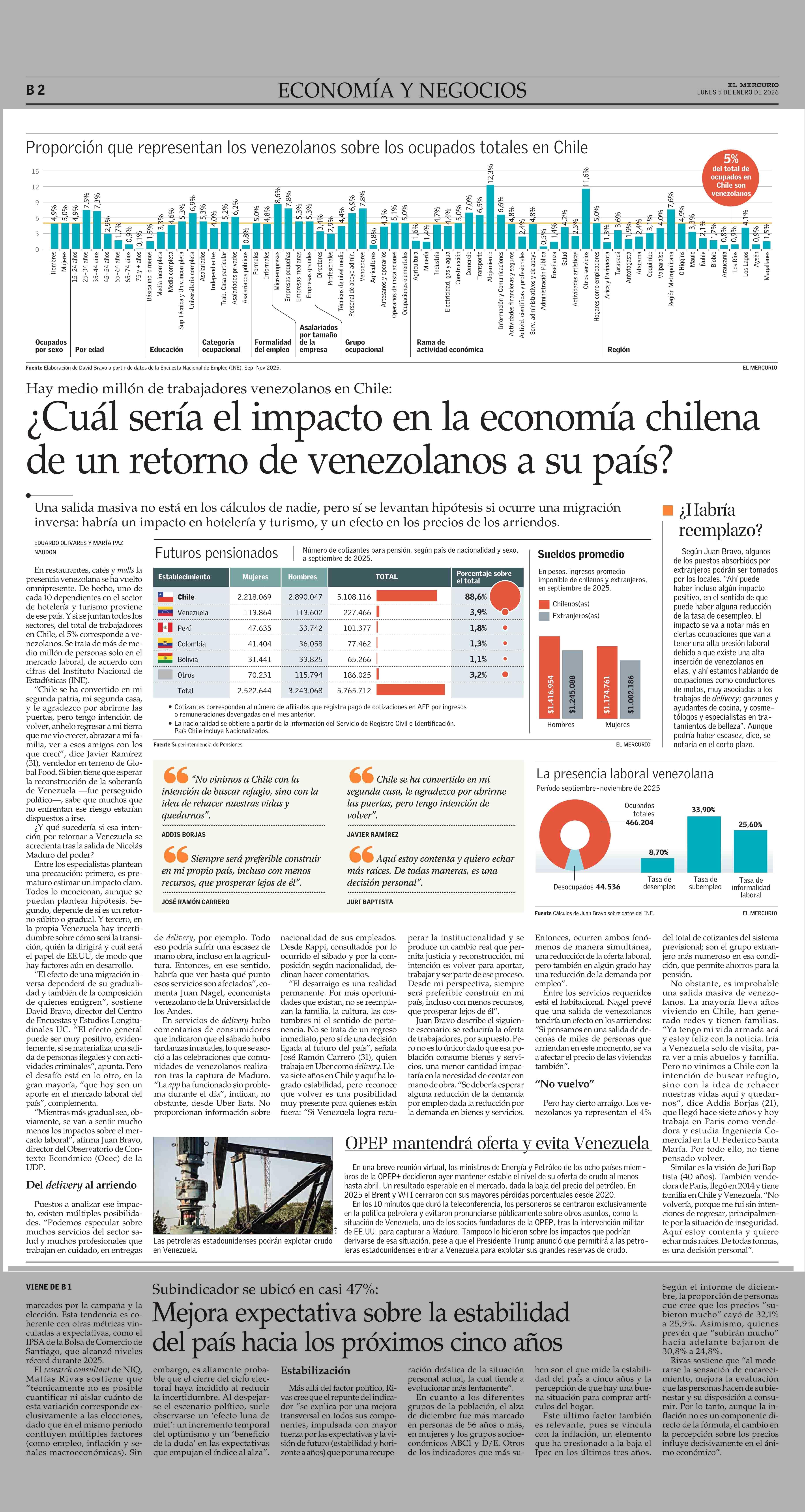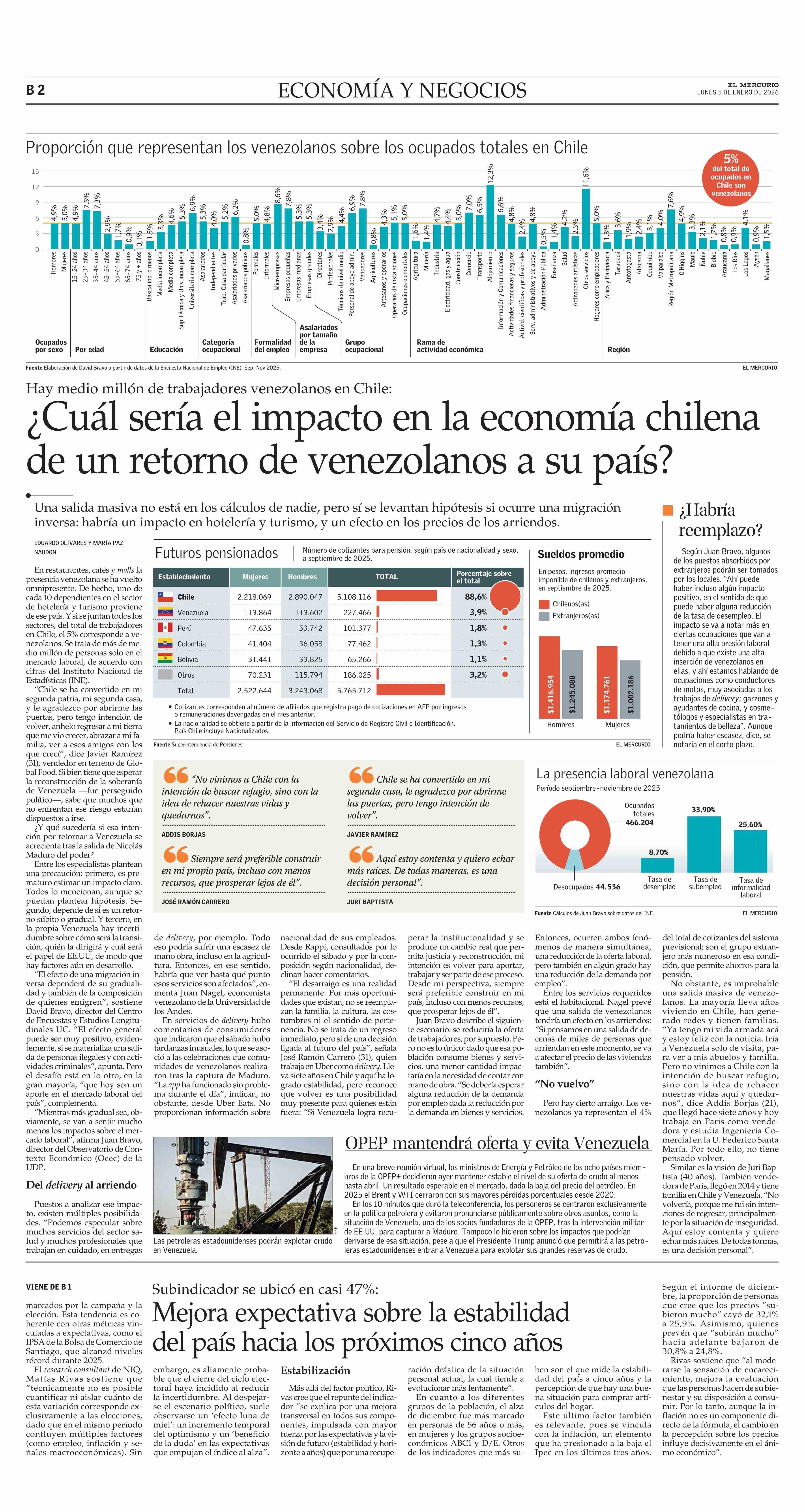 ¿Cuál sería el impacto en la economía chilena de un retorno de venezolanos a su país? 05-01-2026 El Mercurio |