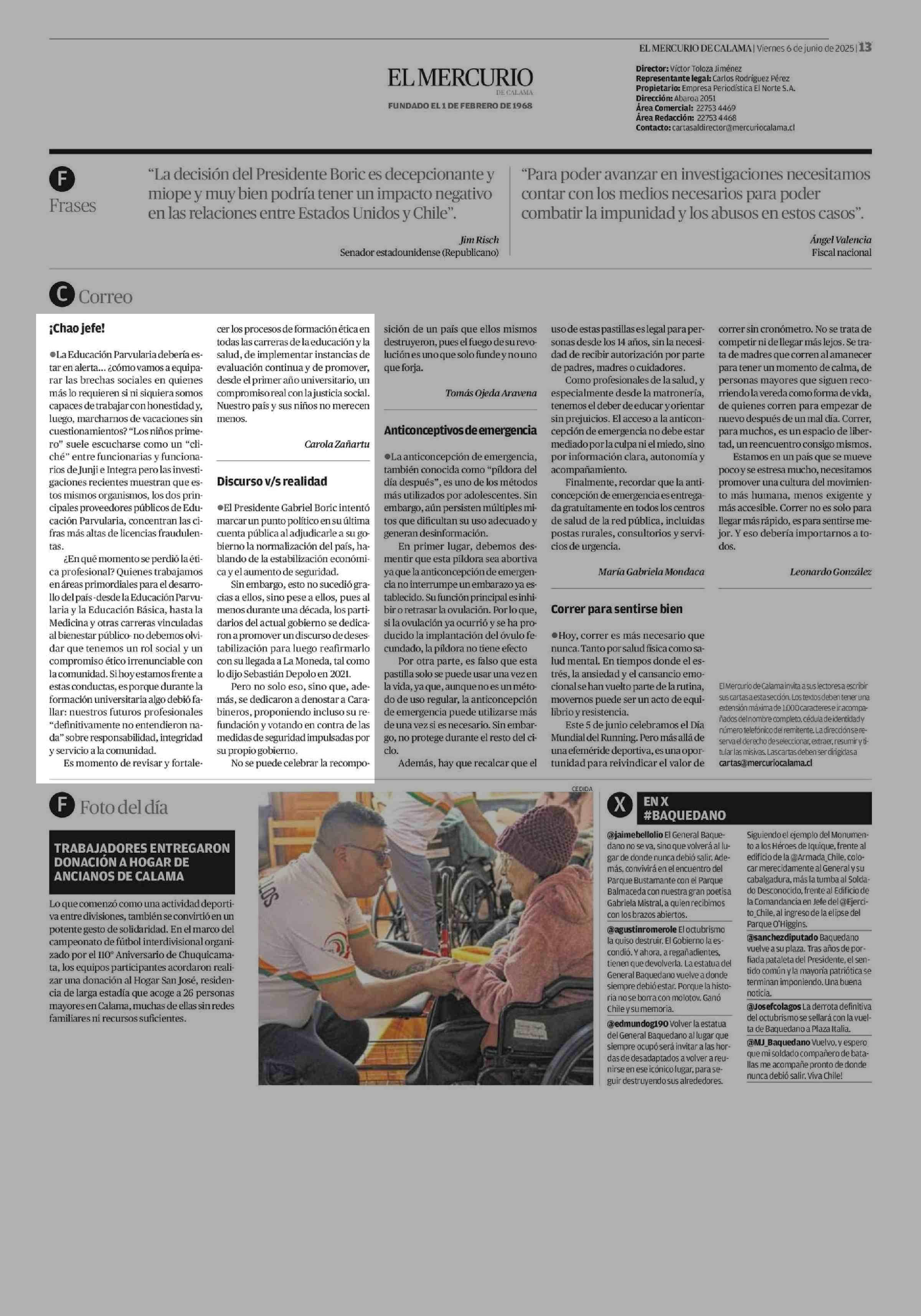 ¡Chao jefe! 06-06-2025 El Mercurio de Calama |
