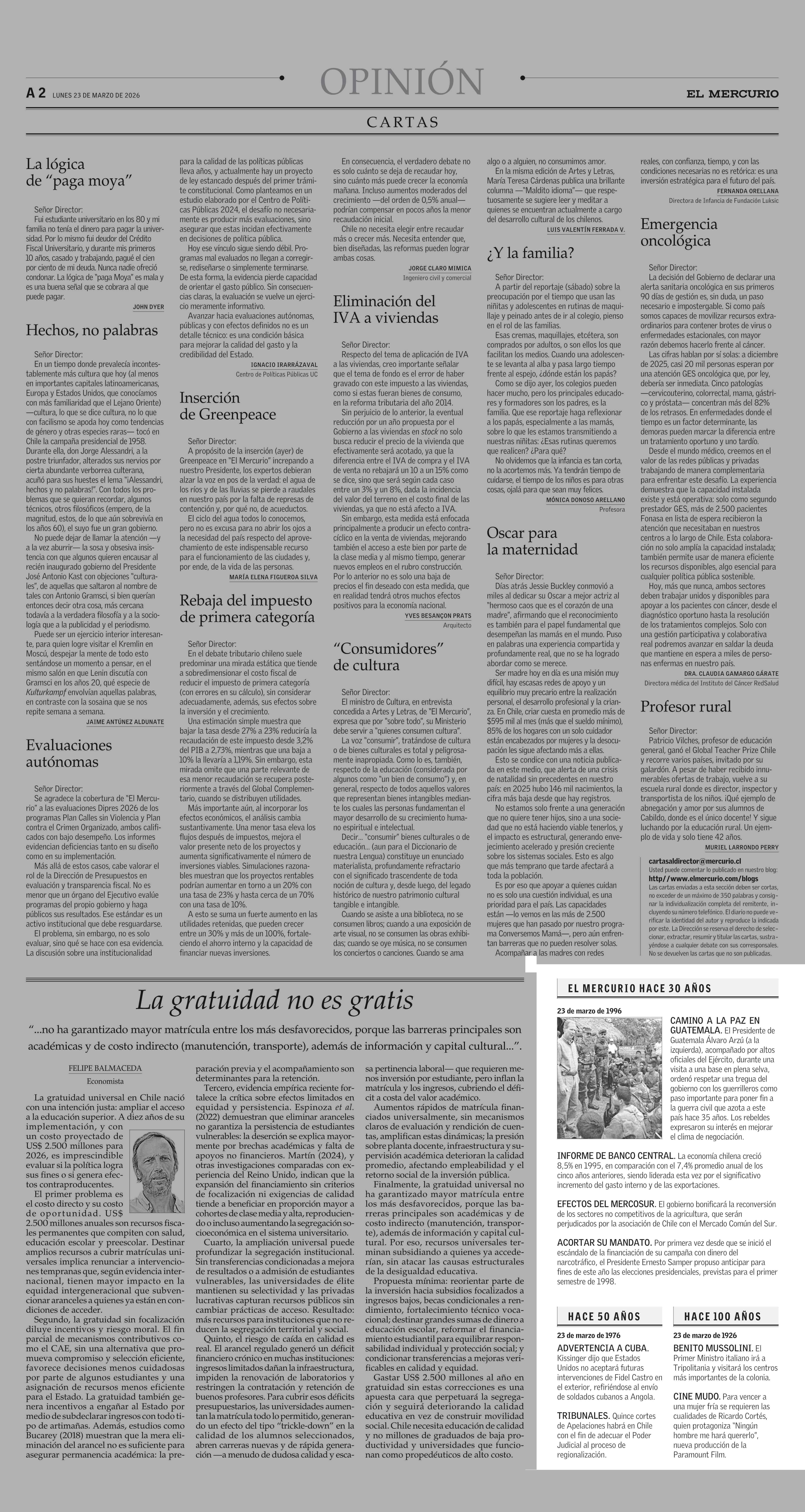 EL MERCURIO HACE 30 AÑOS 23-03-2026 El Mercurio |