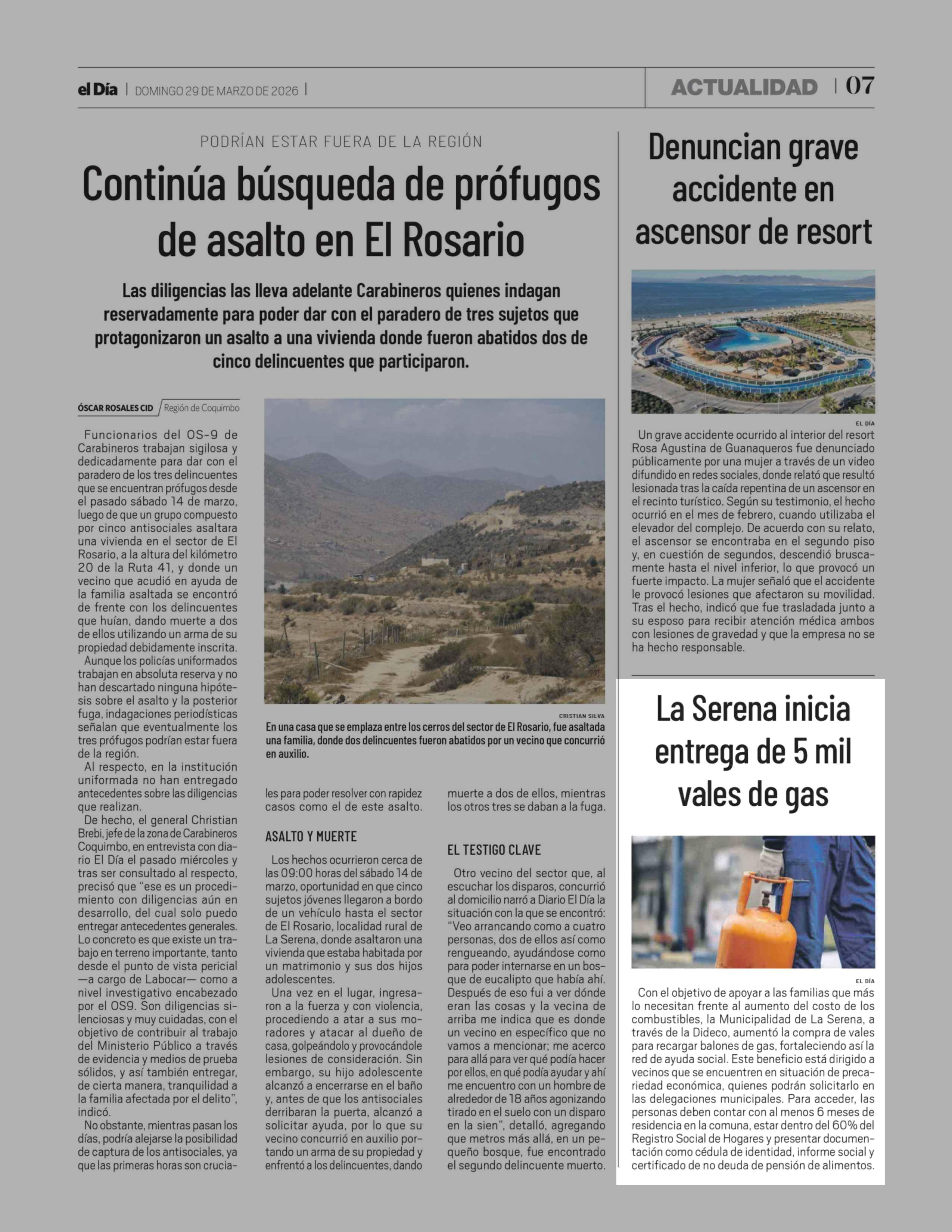 La Serena inicia entrega de 5 mil vales de gas 29-03-2026 El Día |