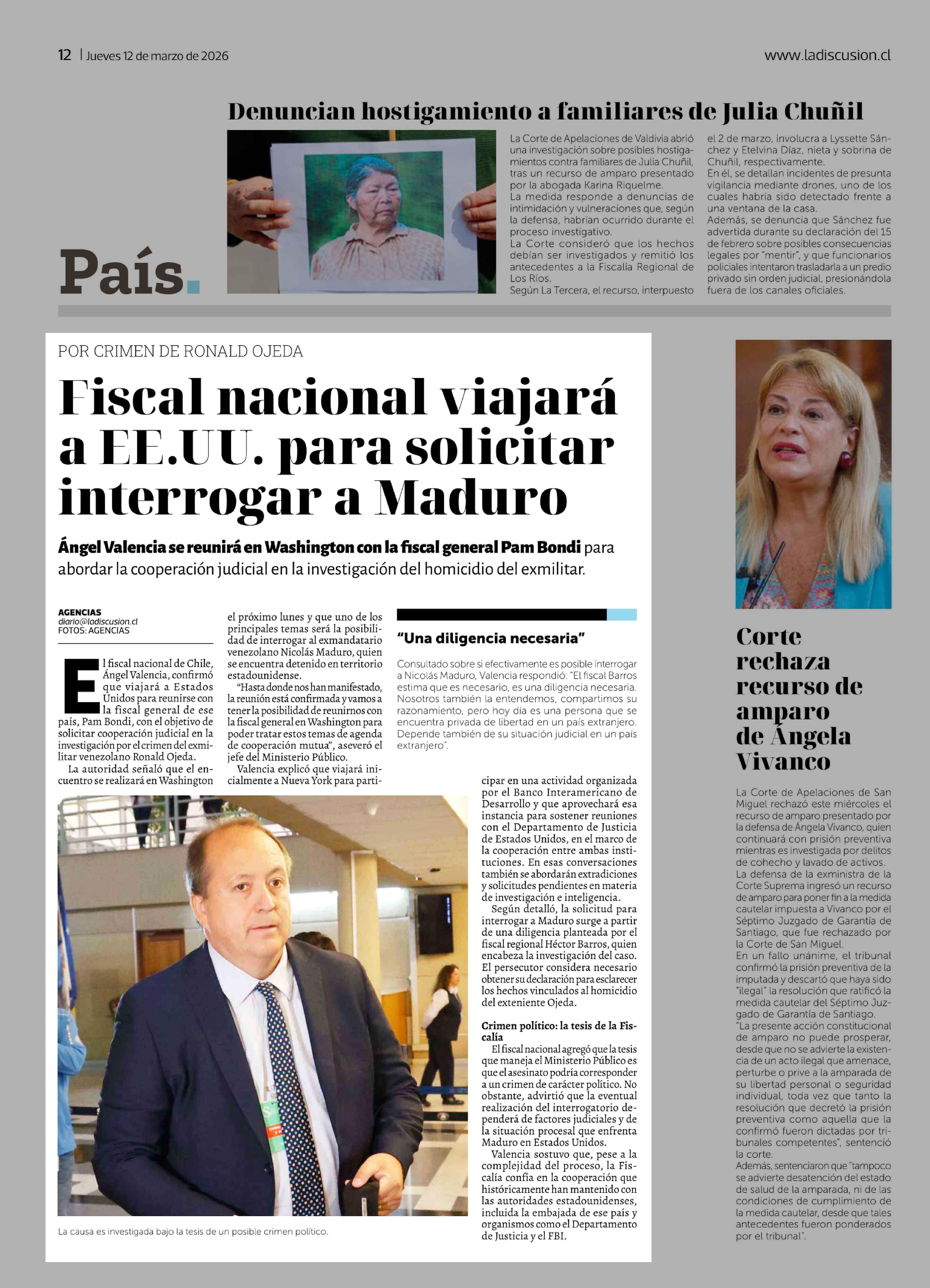 Fiscal nacional viajará a EE.UU. para solicitar interrogar a Maduro 12-03-2026 La Discusión |