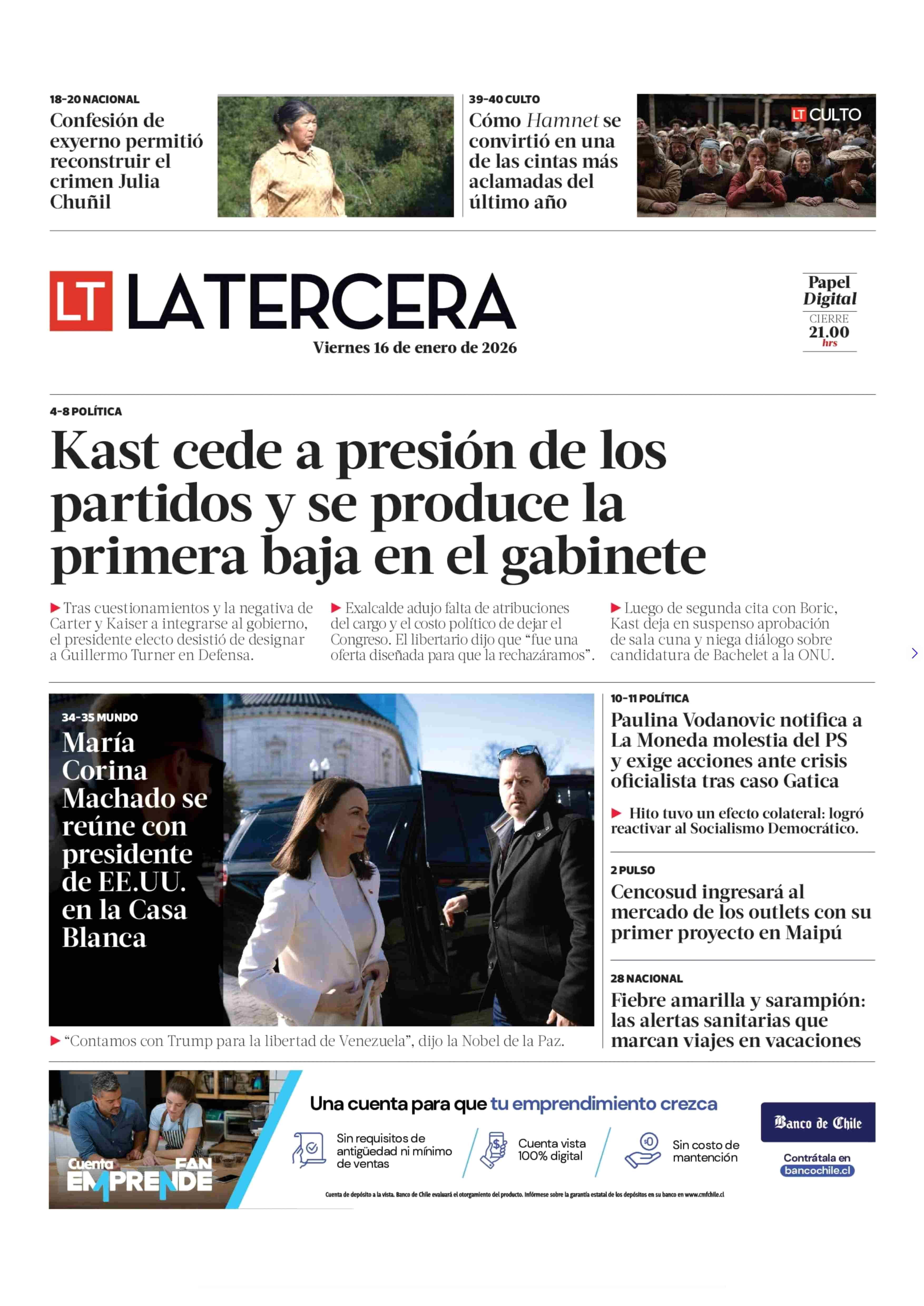 Fecha: 16-01-2026 Sector: Portada Región: Región Metropolitana de Santiago