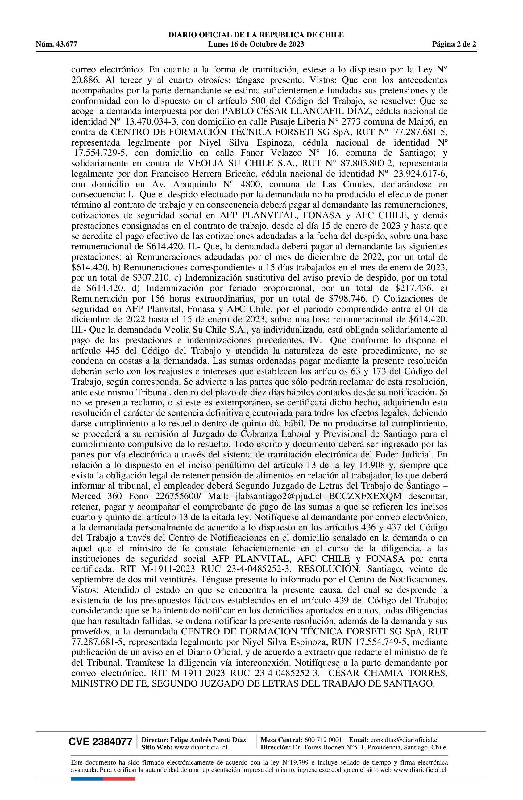 | Fuente: | Diario Oficial Edición Electrónica (Diario Oficial de Chile - 3 Public. Judiciales) | Página(s): | 763-764 |