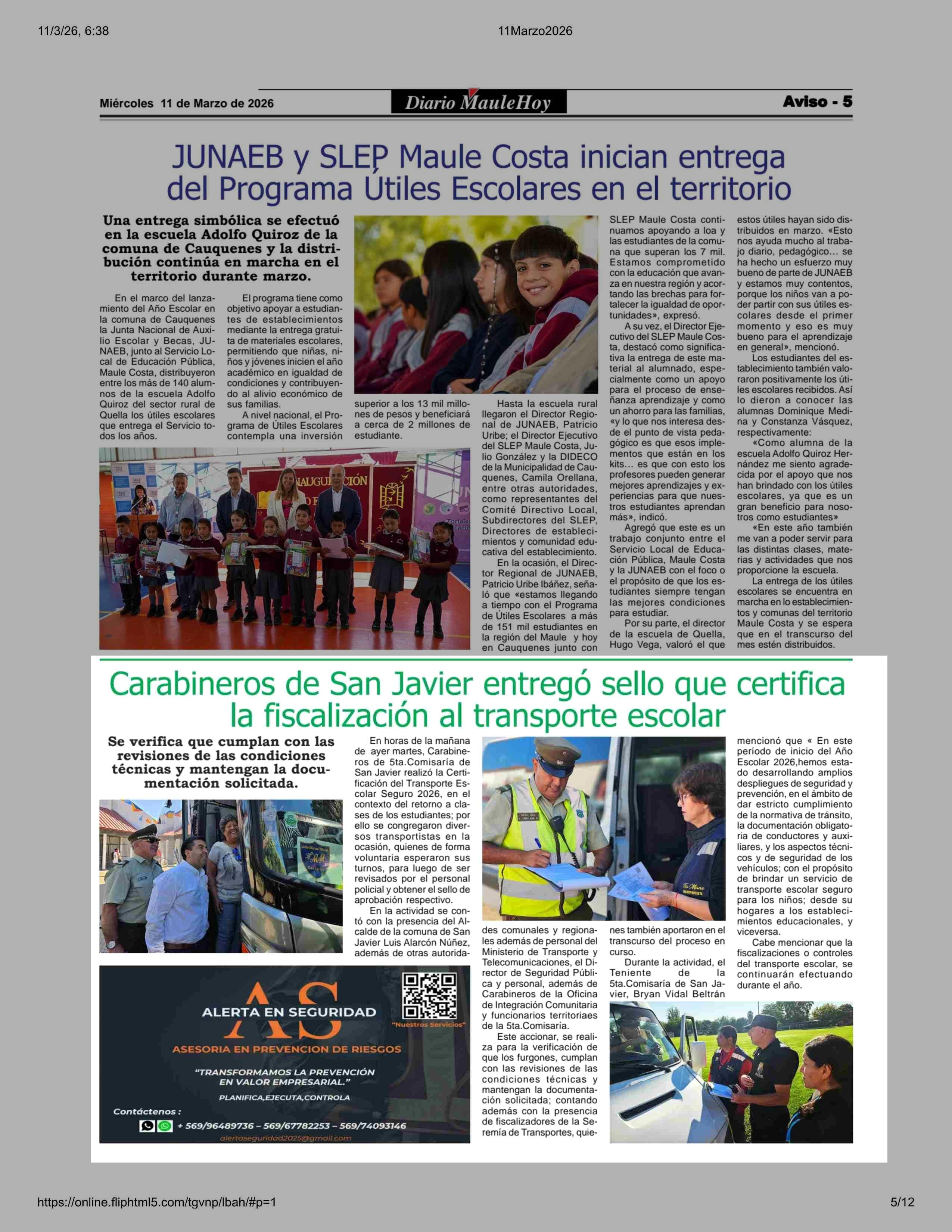 | Fecha: | 11-03-2026 | Sector: | Noticia general | Región: | Región del Maule |