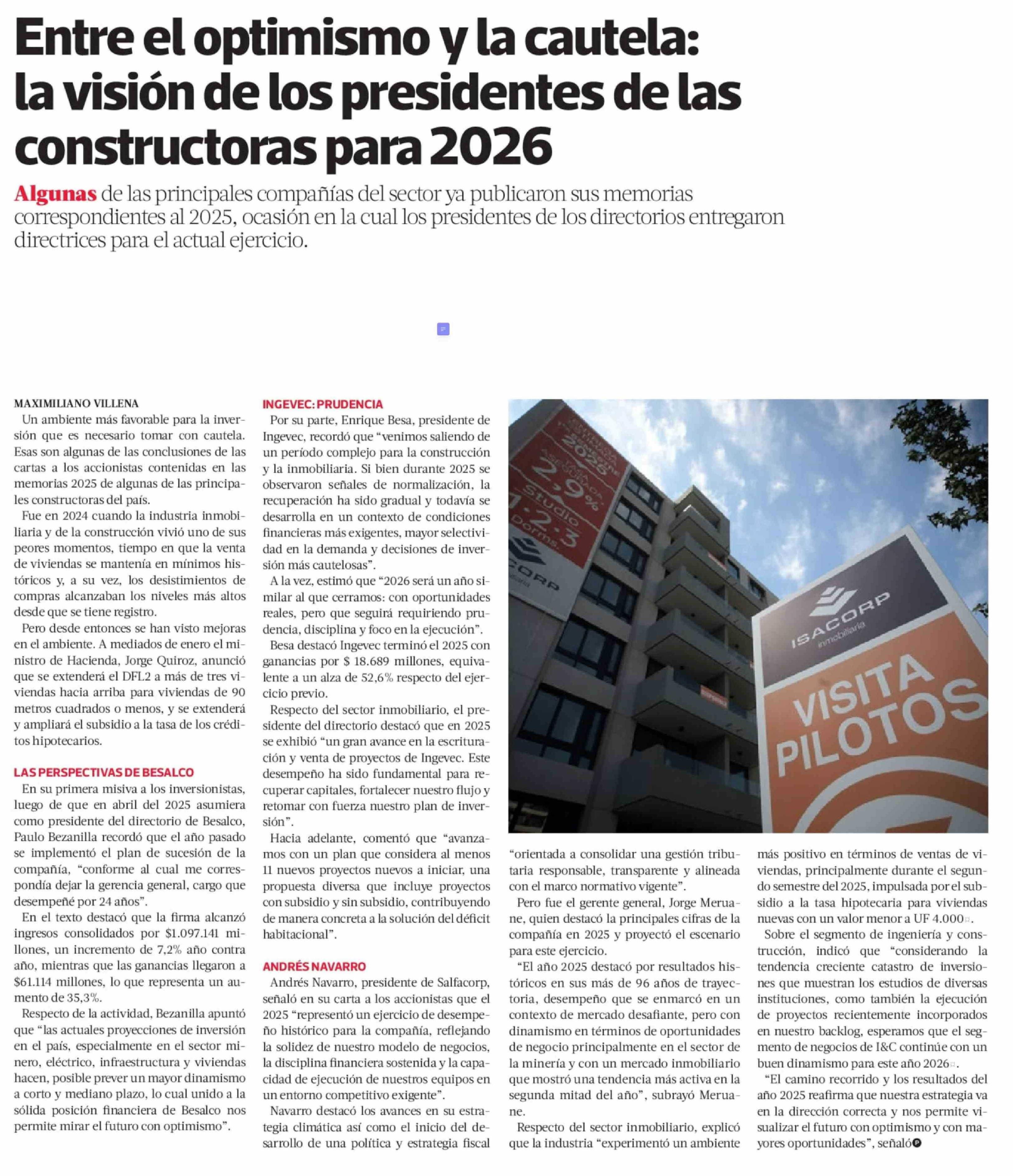 Título: Entre el optimismo y la cautela: la visión de los presidentes de las constructoras para 2026