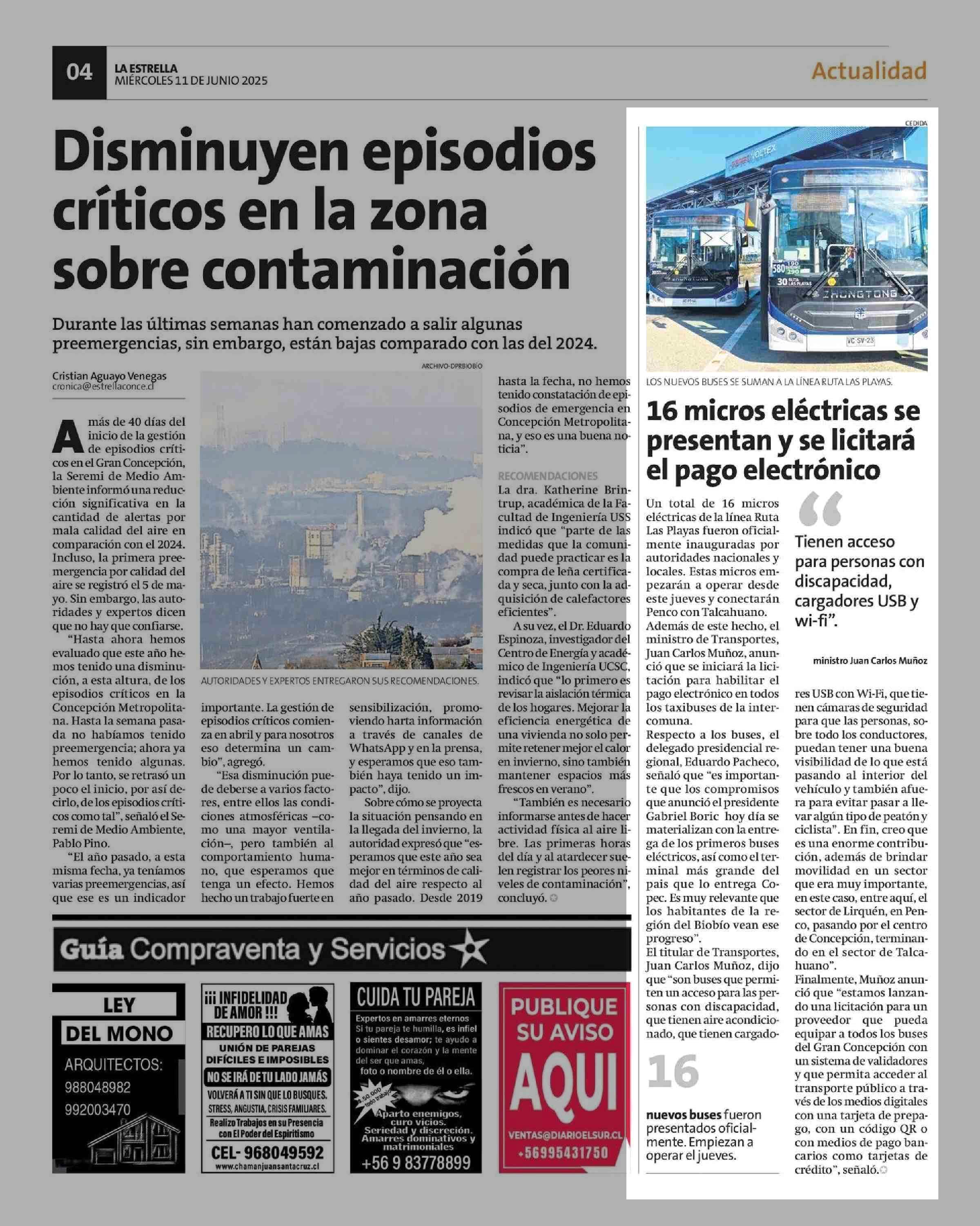 16 Micros eléctricas se presentan y se licitará el pago electrónico 11-06-2025 La Estrella de Concepción |