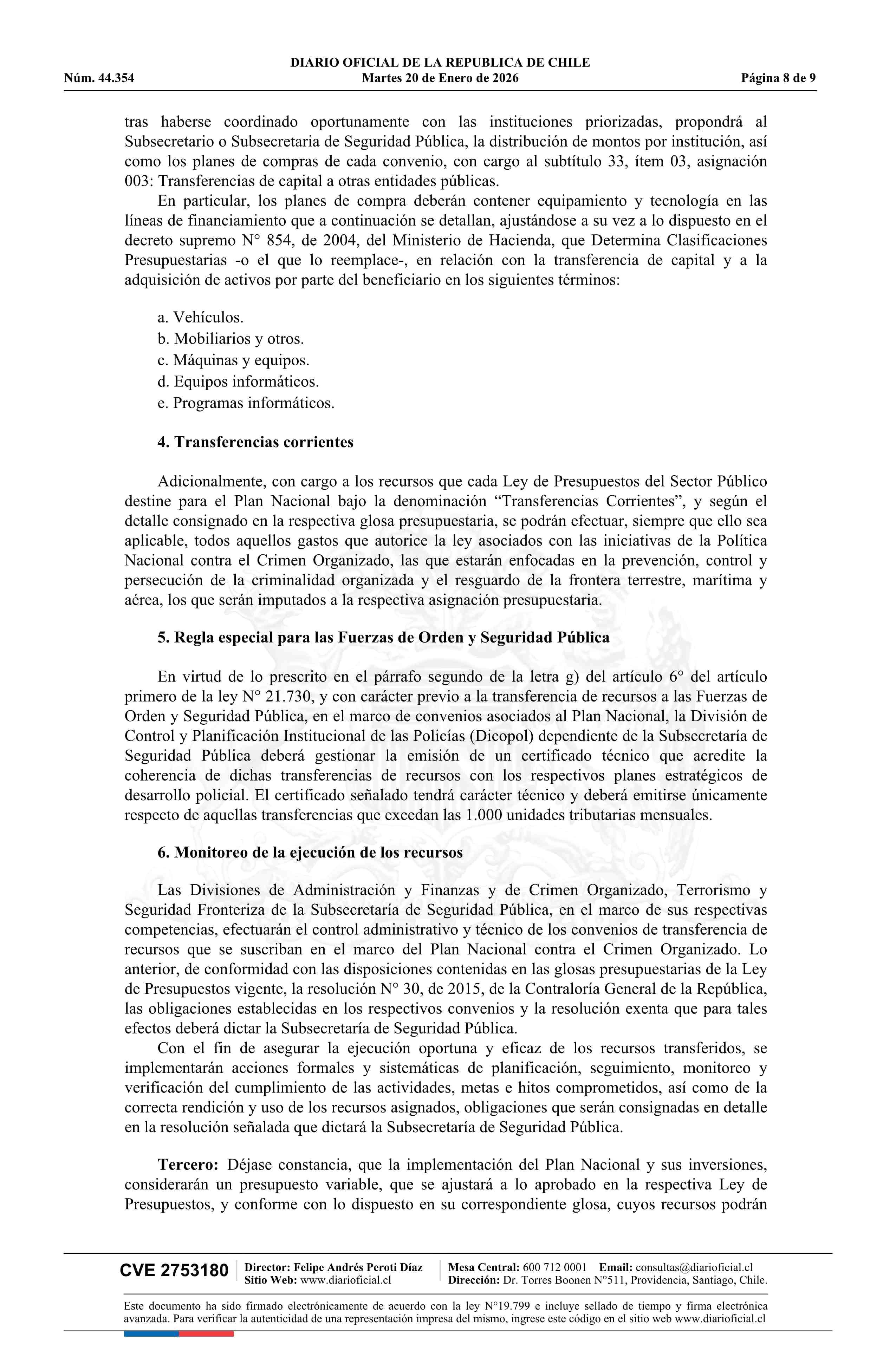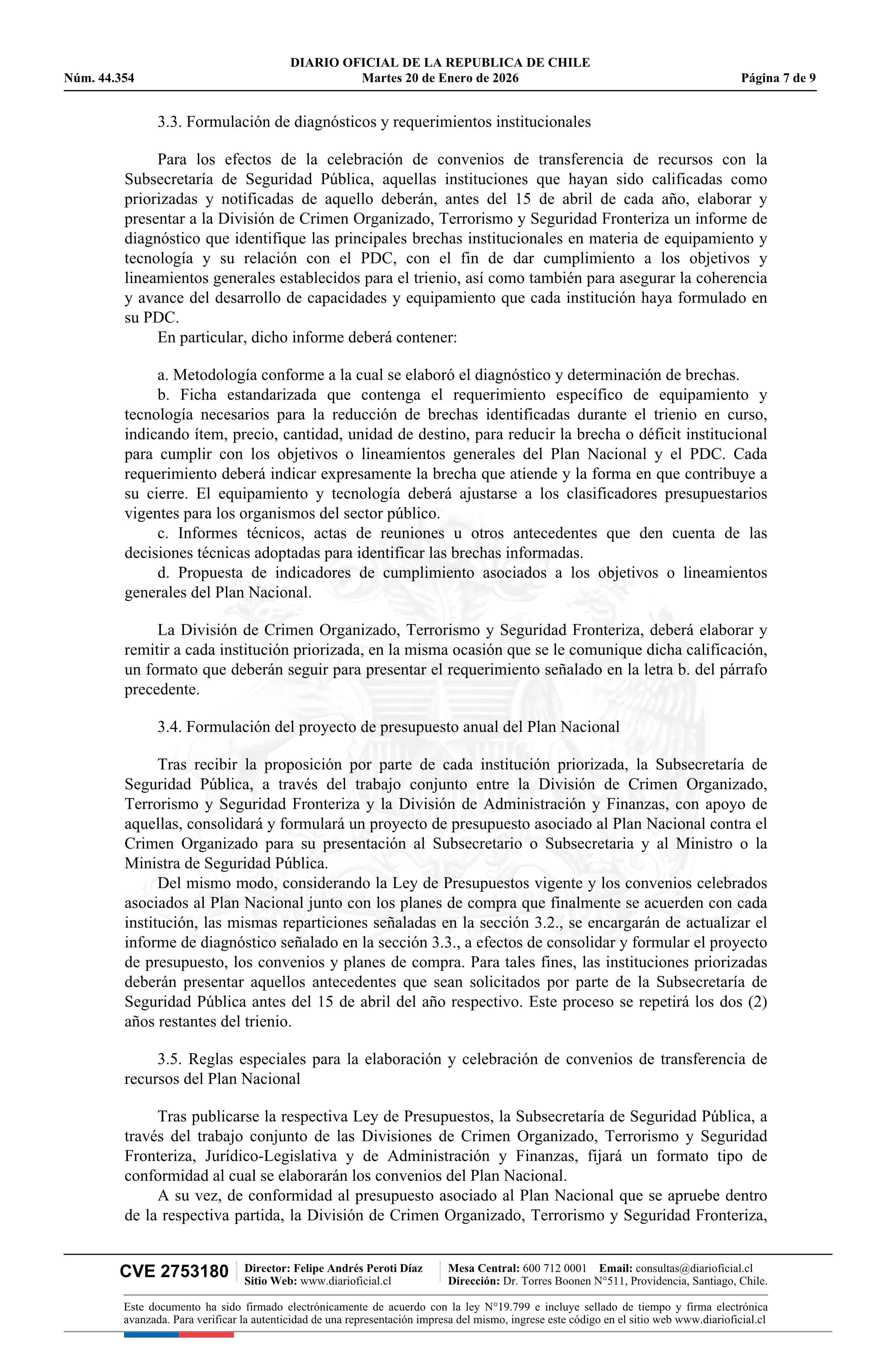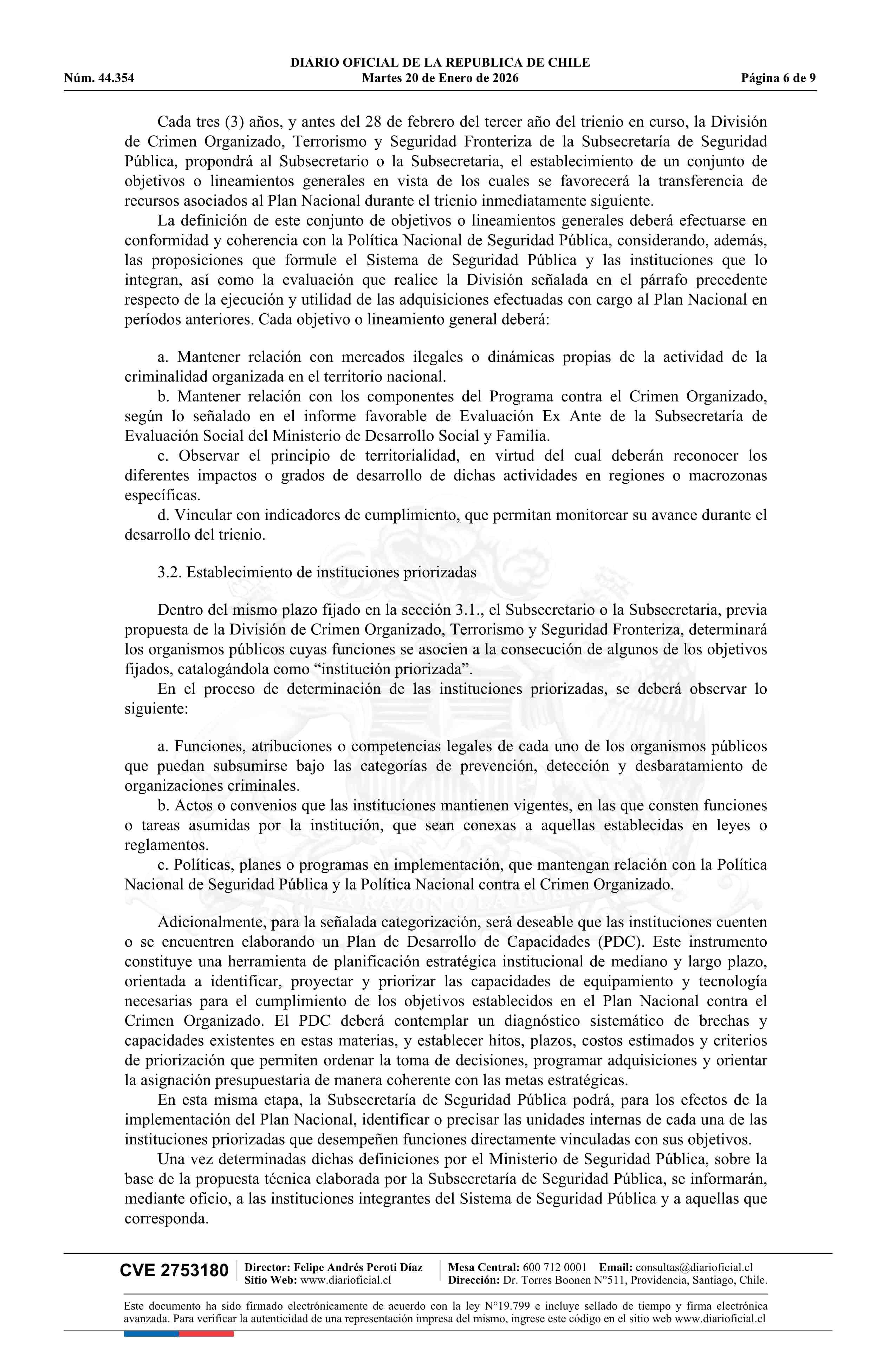 Resolución exenta número 2.530, de 2025.- Deja sin efecto resolución N° 6.348 exenta, de 2022, de la Subsecretaría del Interior, y aprueba Plan Nacional contra el Crimen Organizado 20-01-2026 DIARIO OFICIAL CHILE - BOLETÍN OFICIAL DE MINERÍA |