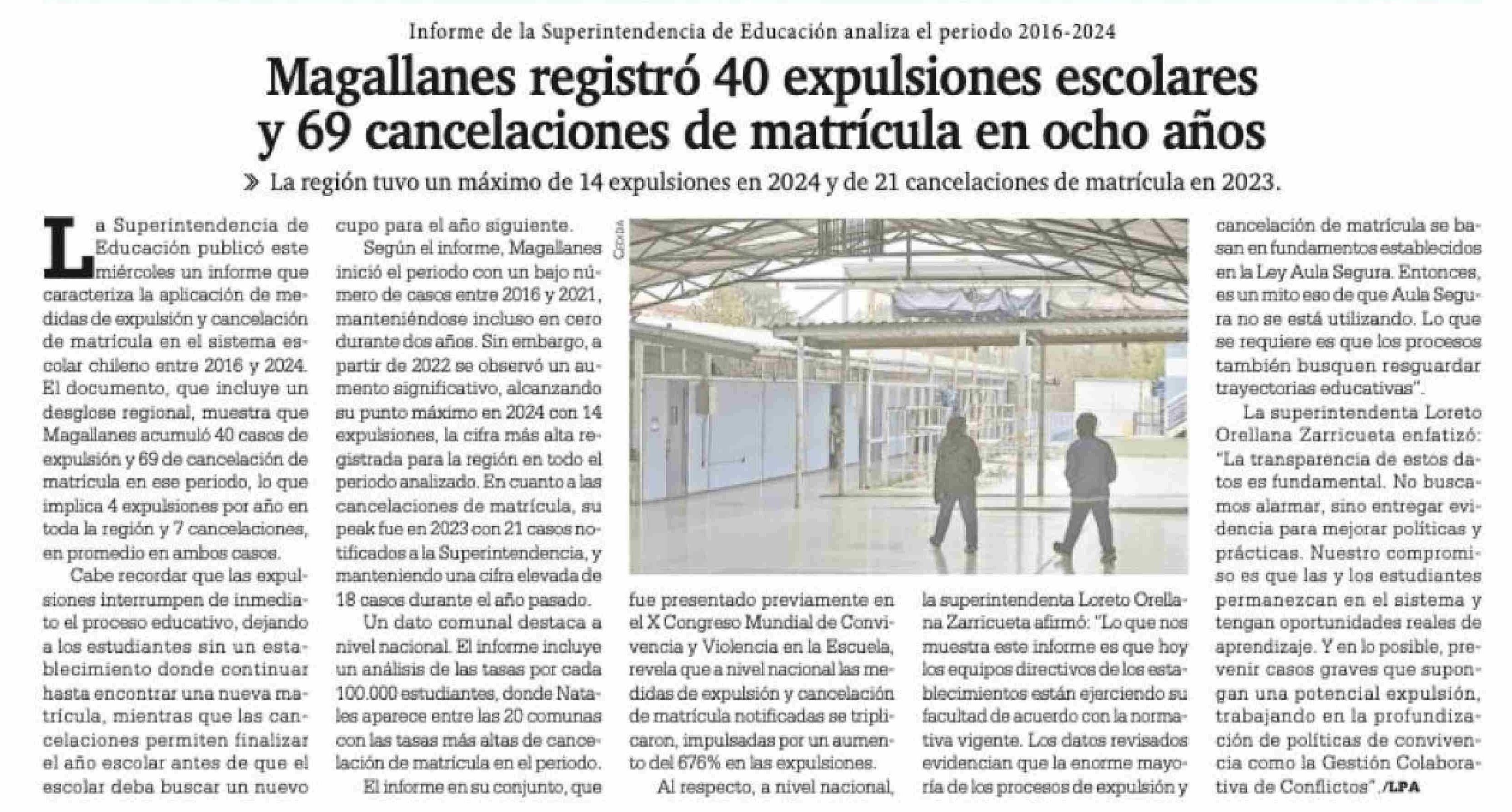 | Título: | Magallanes registró 40 expulsiones escolares y 69 cancelaciones de matrícula en ocho años |