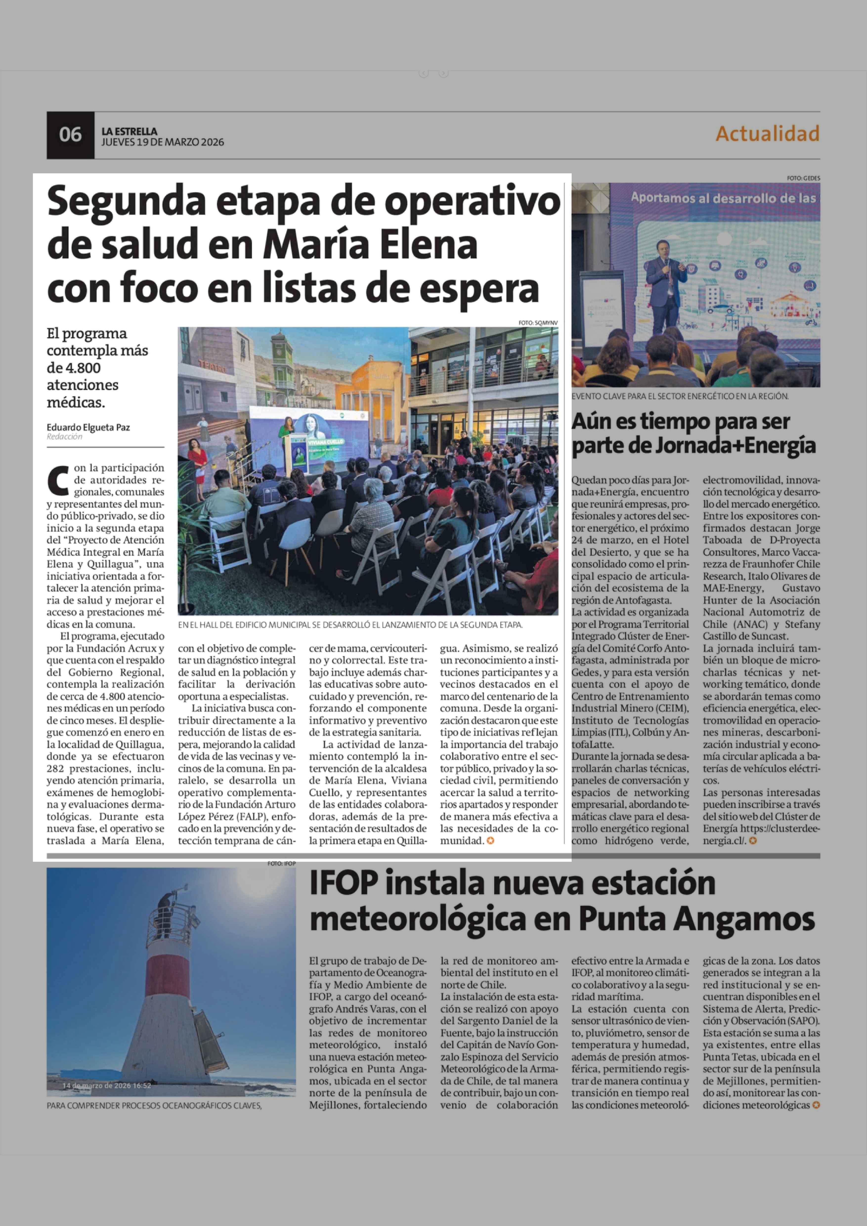| Fecha: | 19-03-2026 | Sector: | Noticia general | Región: | Región de Antofagasta |