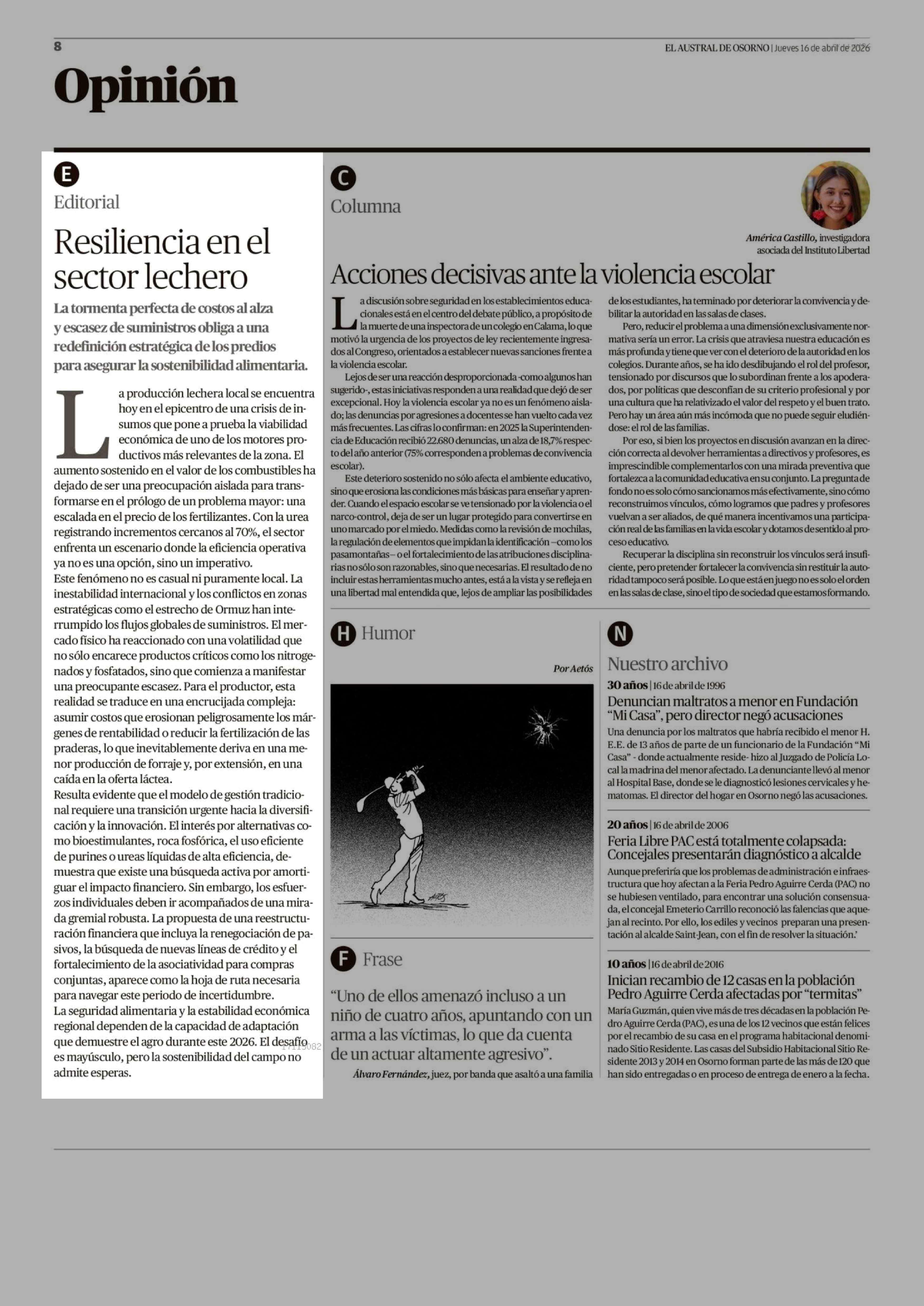 Fecha: 16-04-2026 Sector: Editorial Región: Región de Los Lagos
