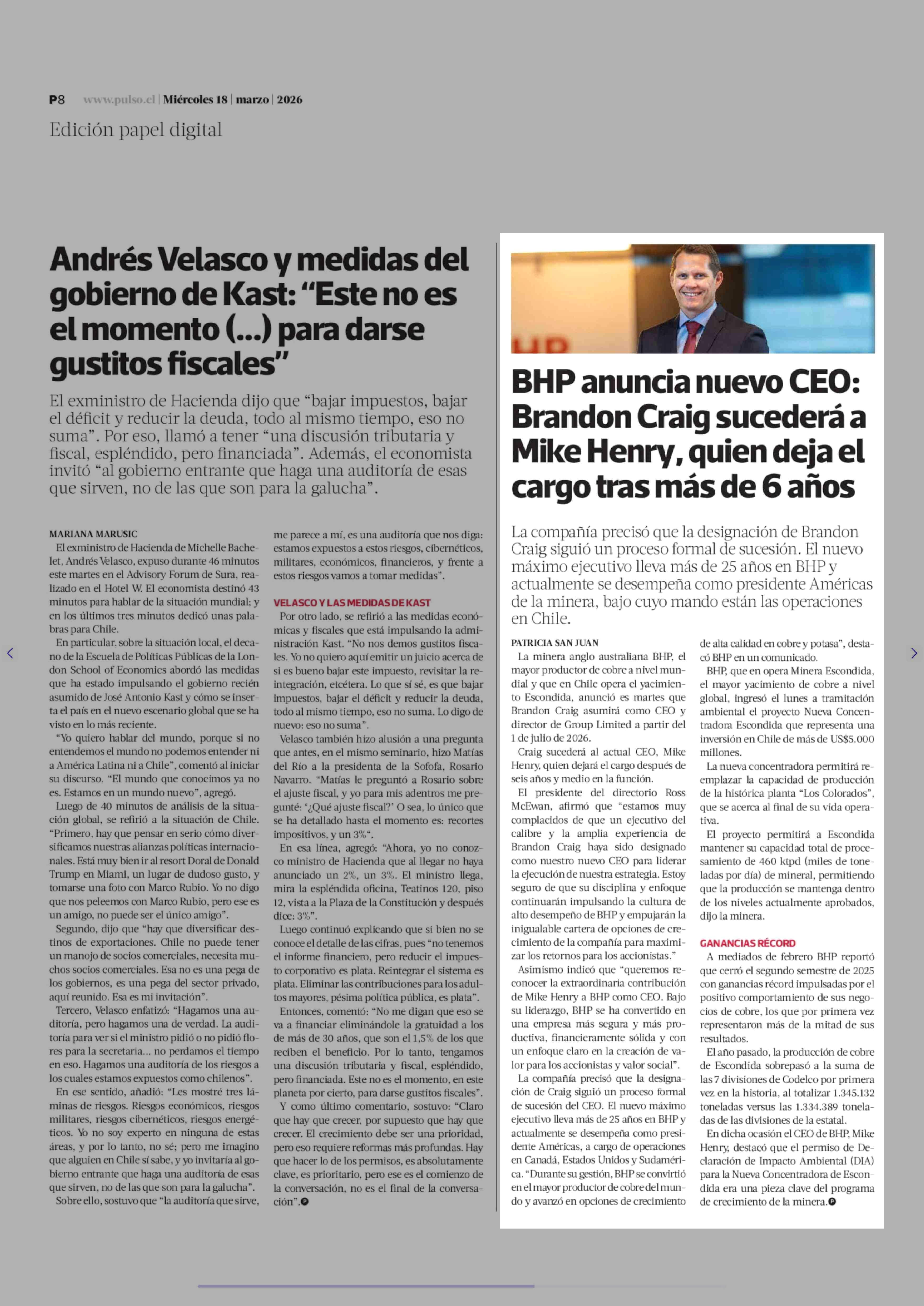 Título: BHP anuncia nuevo CEO: Brandon Craig sucederá a Mike Henry, quien deja el cargo tras más de 6 años