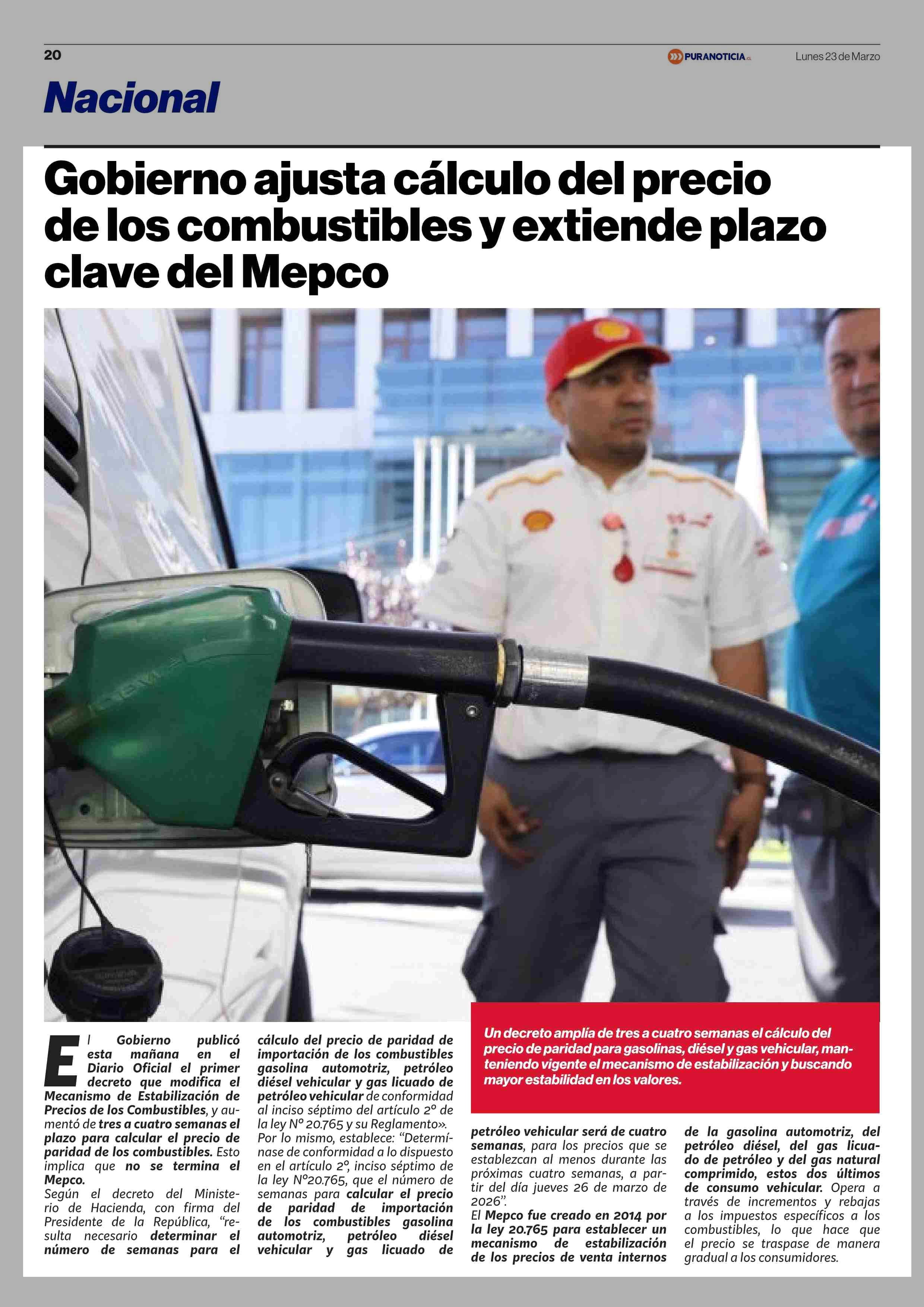 Gobierno ajusta cálculo del precio de los combustibles y extiende plazo clave del Mepco 23-03-2026 Puranoticia.cl |