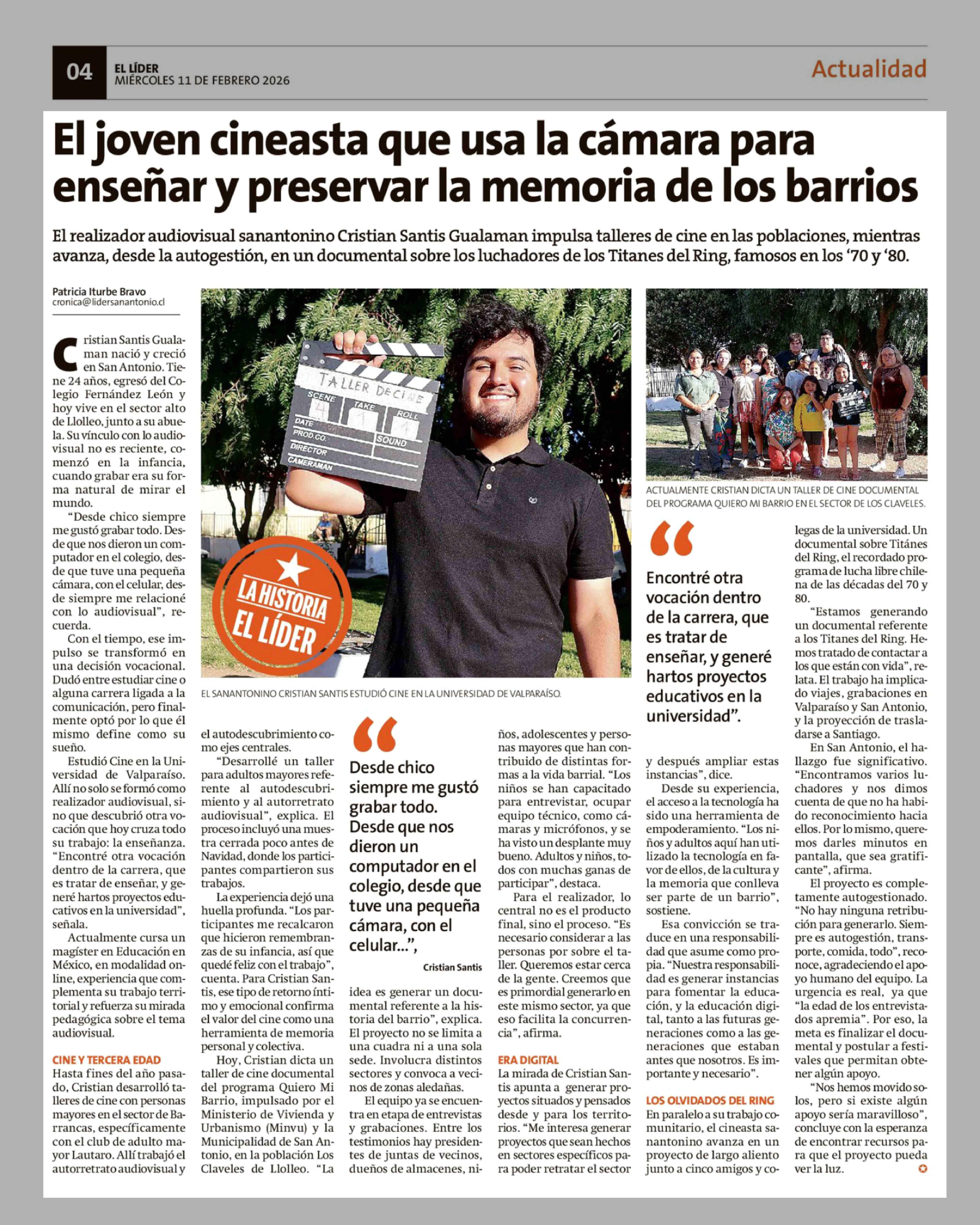Título: El joven cineasta que usa la cámara para enseñar y preservar la memoria de los barrios