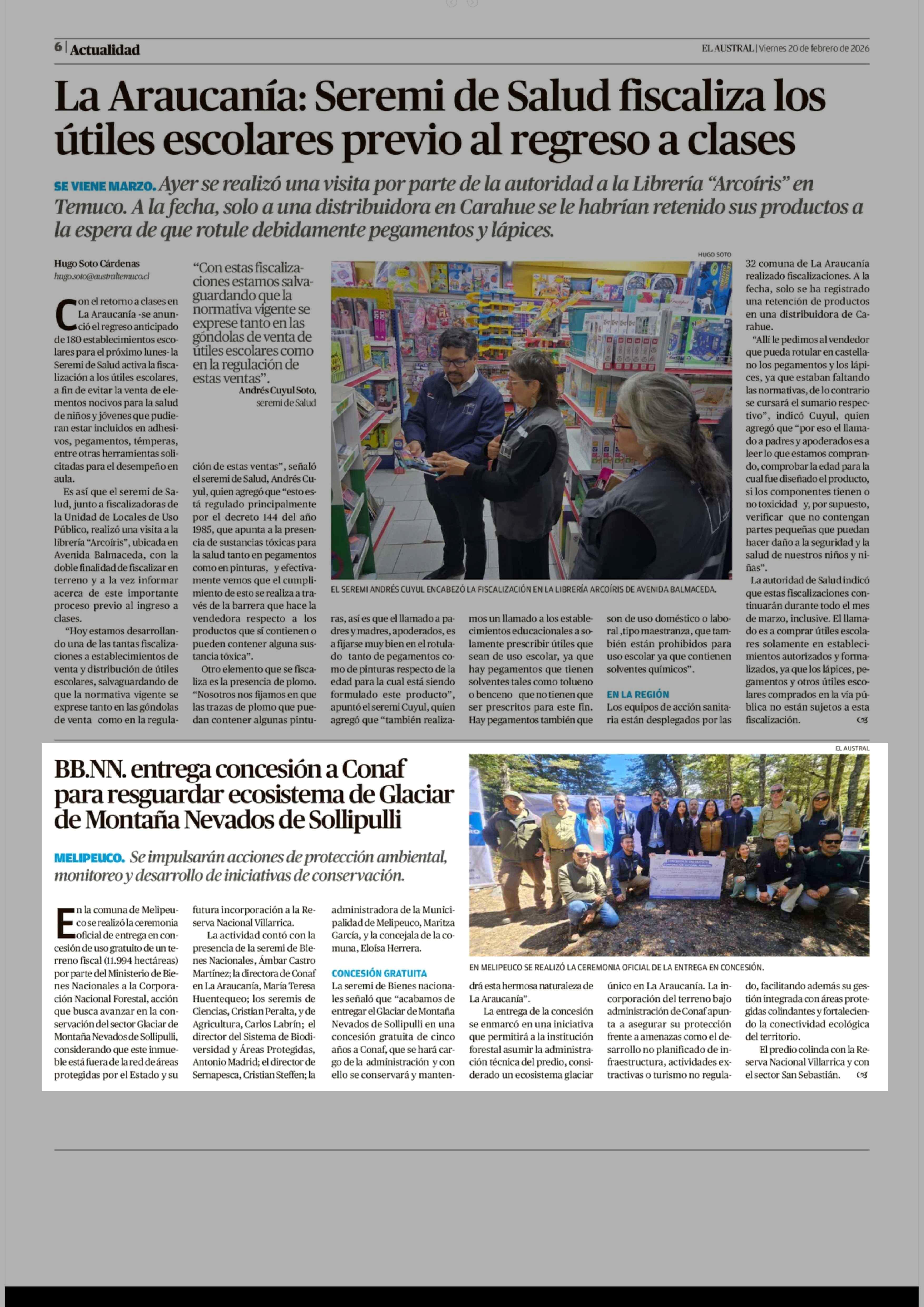 | Fecha: | 20-02-2026 | Sector: | Noticia general | Región: | Región de la Araucanía |