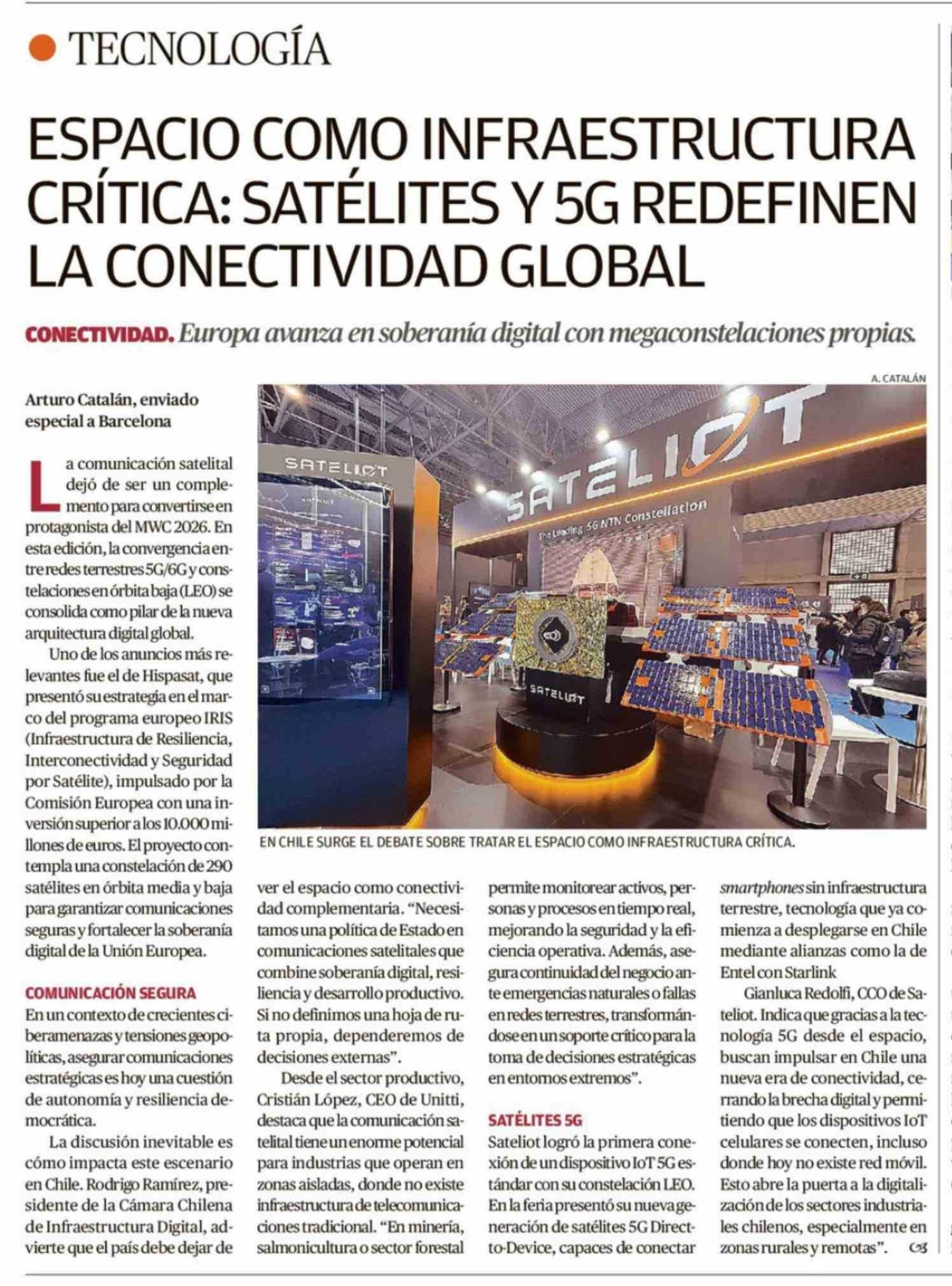 ESPACIO COMO INFRAESTRUCTURA CRÍTICA: SATÉLITES Y 5G REDEFINEN LA CONECTIVIDAD GLOBAL 04-03-2026 El Mercurio de Valparaíso |